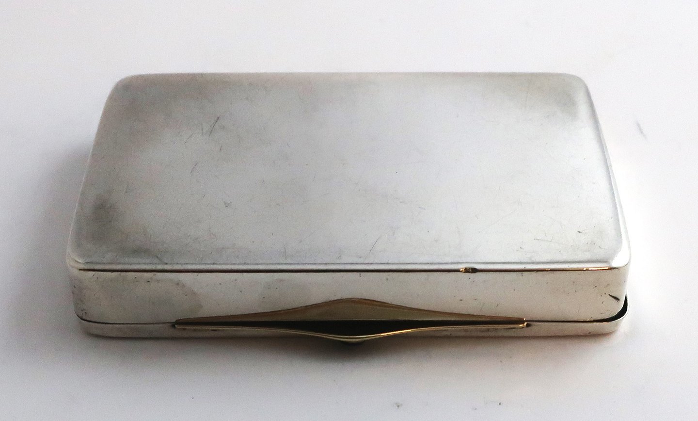 Sølv æske (900). Længde 9,5 cm. Bredde 6 cm. Højde 1,6 cm. Indgraveret : Til min elskede Helena fra din hengivne Harald Davos 1918 (Schweiz). Proveniens ; Sorgenfri slot.