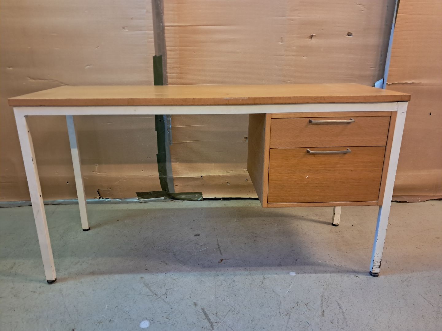 Skrivebord i metal og fineret egetræ, fra 1990erne.