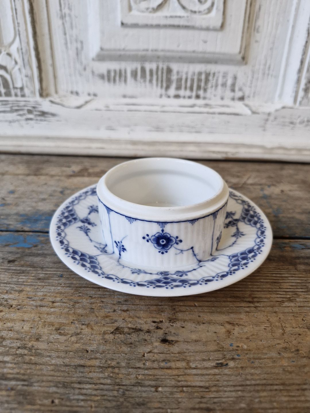 Royal Copenhagen Musselmalet halvblonde smørskål på fast underfad uden låg
