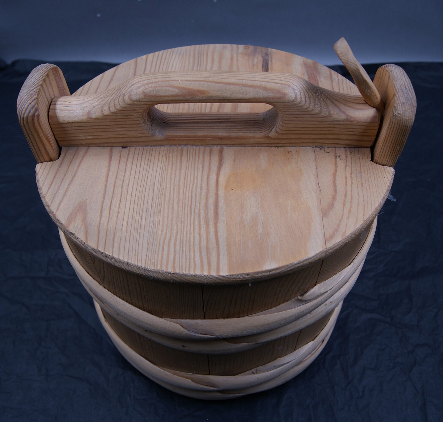 Round wooden Tejne (lunch box), probably from Sweden. H 17.5cm - Ö 23cm