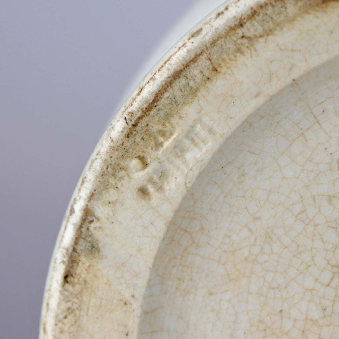 Antik ølkrus i fajance, som også er kendt under navnet Portlands krus. Dette krus er fremstillet i perioden år 1870-1923 og er dekoreret med kobbertryk i blå og sort farve med motiv af køer på mark og ved hegn