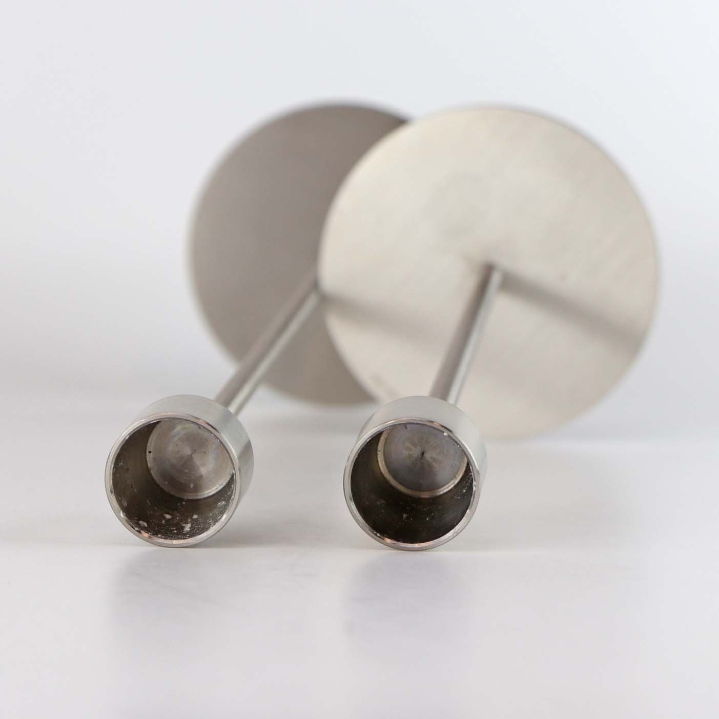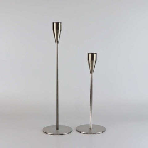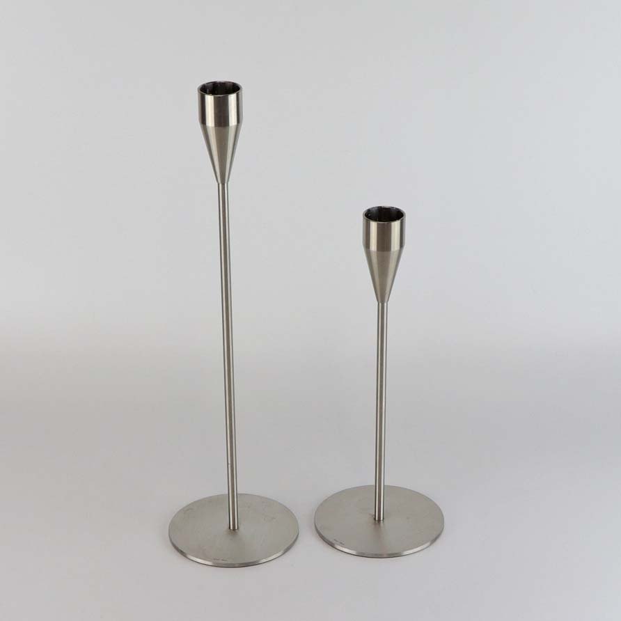 Et sæt med to styk lysestager i stål. Model Venus og Jupiter