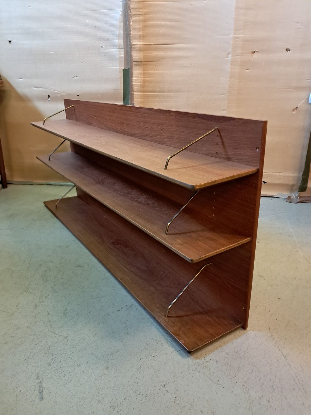 Reol i fineret teaktræ, fra 1960erne.