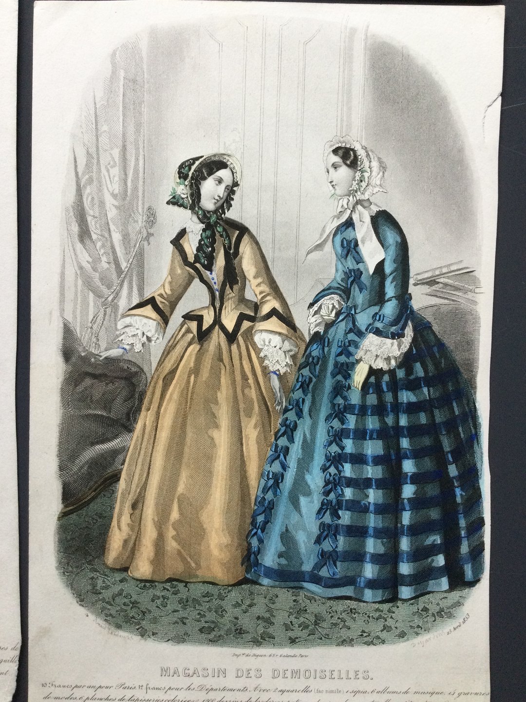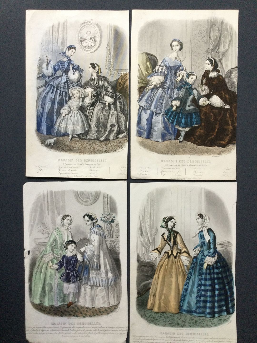 4 franske, kolorerede raderinger af Adèle-Anaîs Colin-Toudouze - Mode 1852-57.