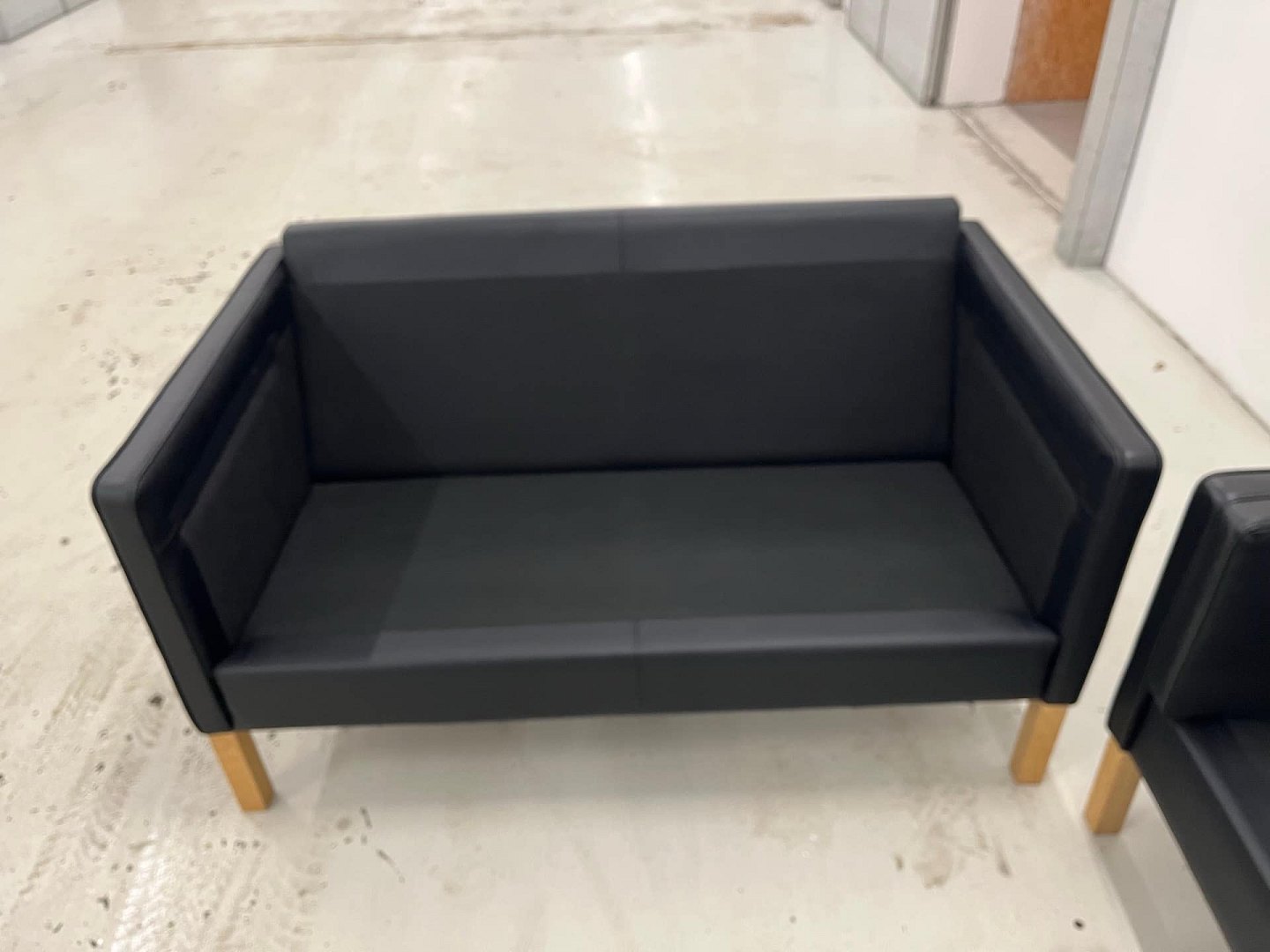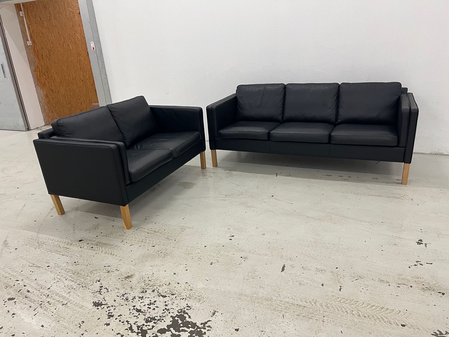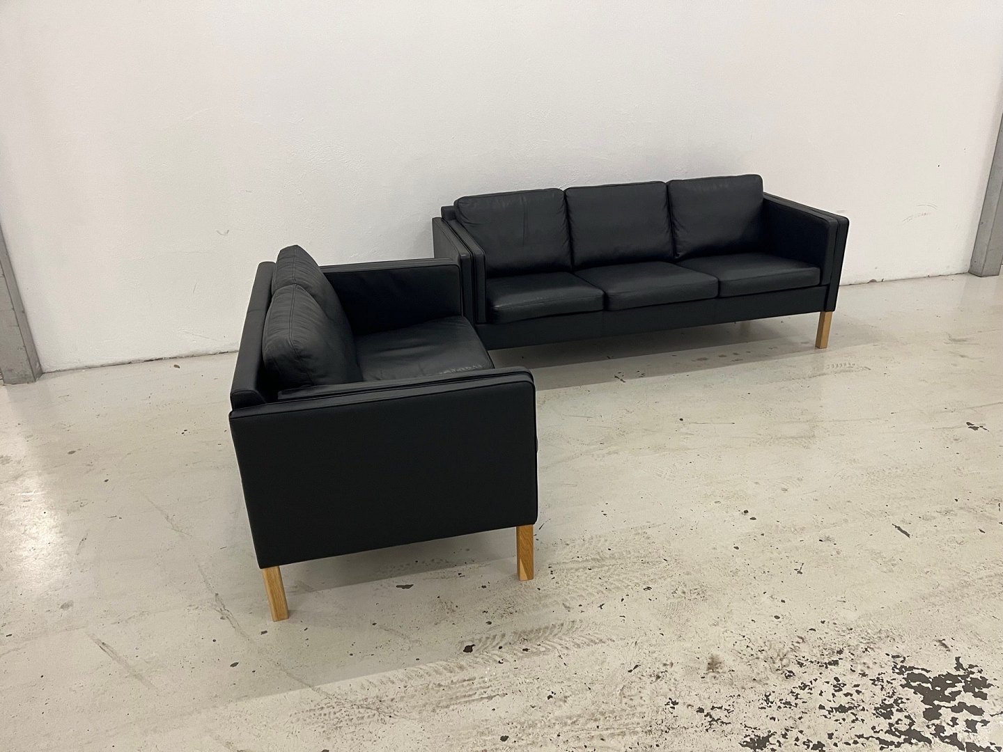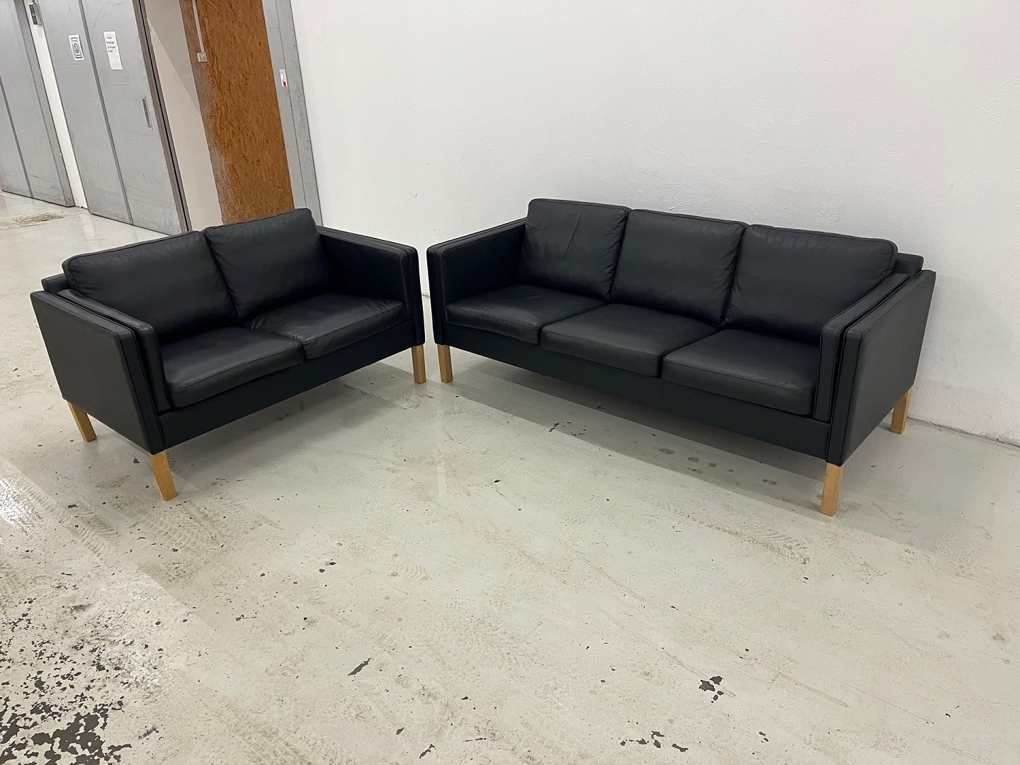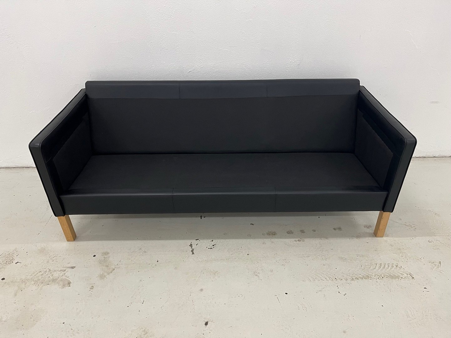 Clausholm sofagruppe 3+2 Pers. Special design fra 2022 i sort okselæder og med ben i lys eg.
