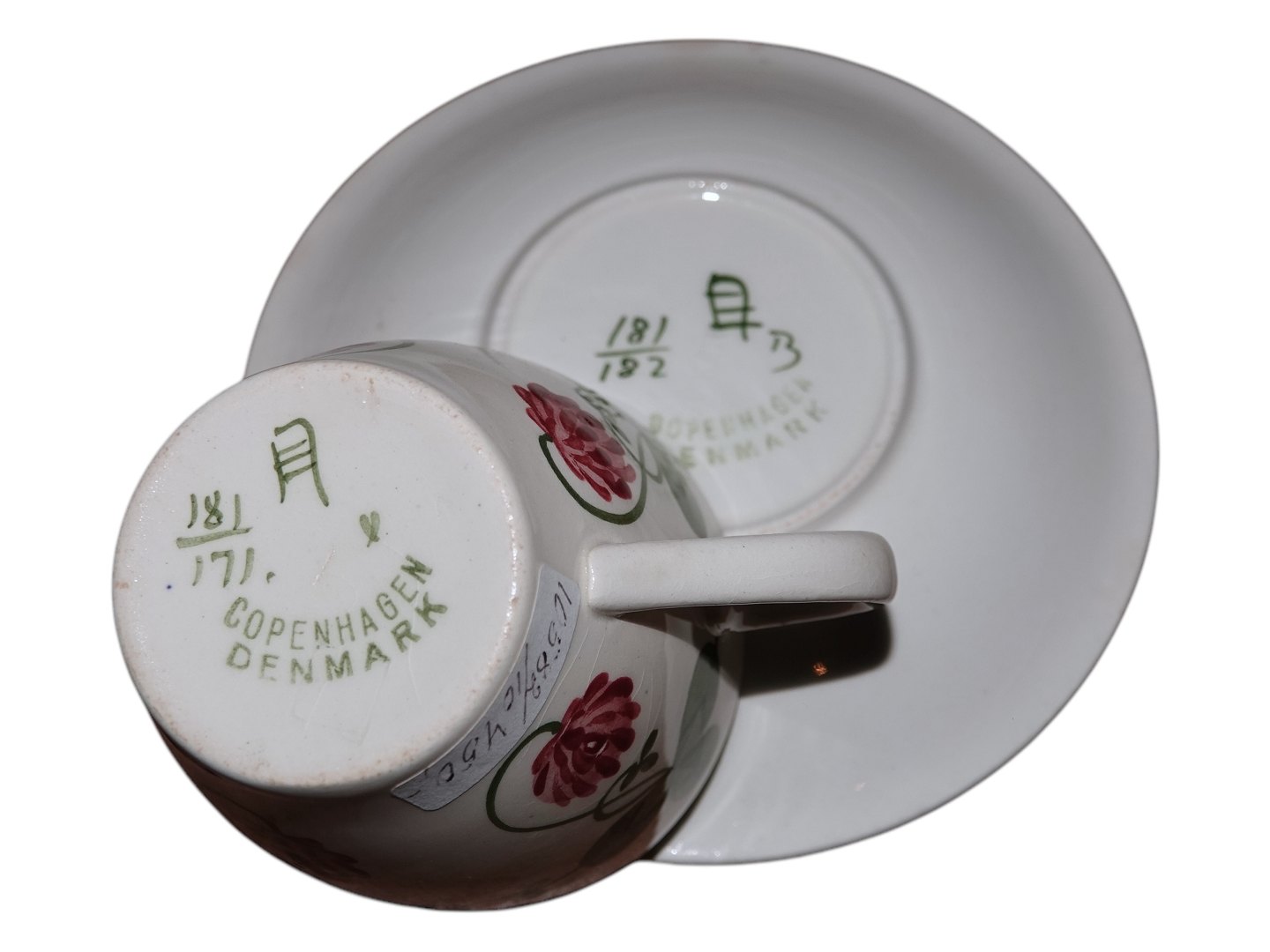 Dekorationsnummer kop 181/171 og ikke tilhørende underkop 181/182.