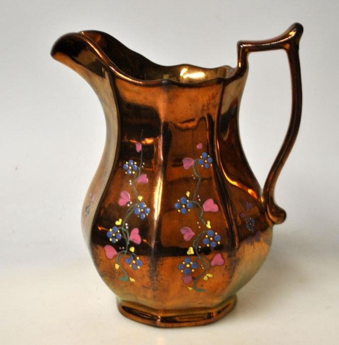 Lustra kande, 19. årh. England. Med emaljedekorationer med blomster. H.: 14 cm.