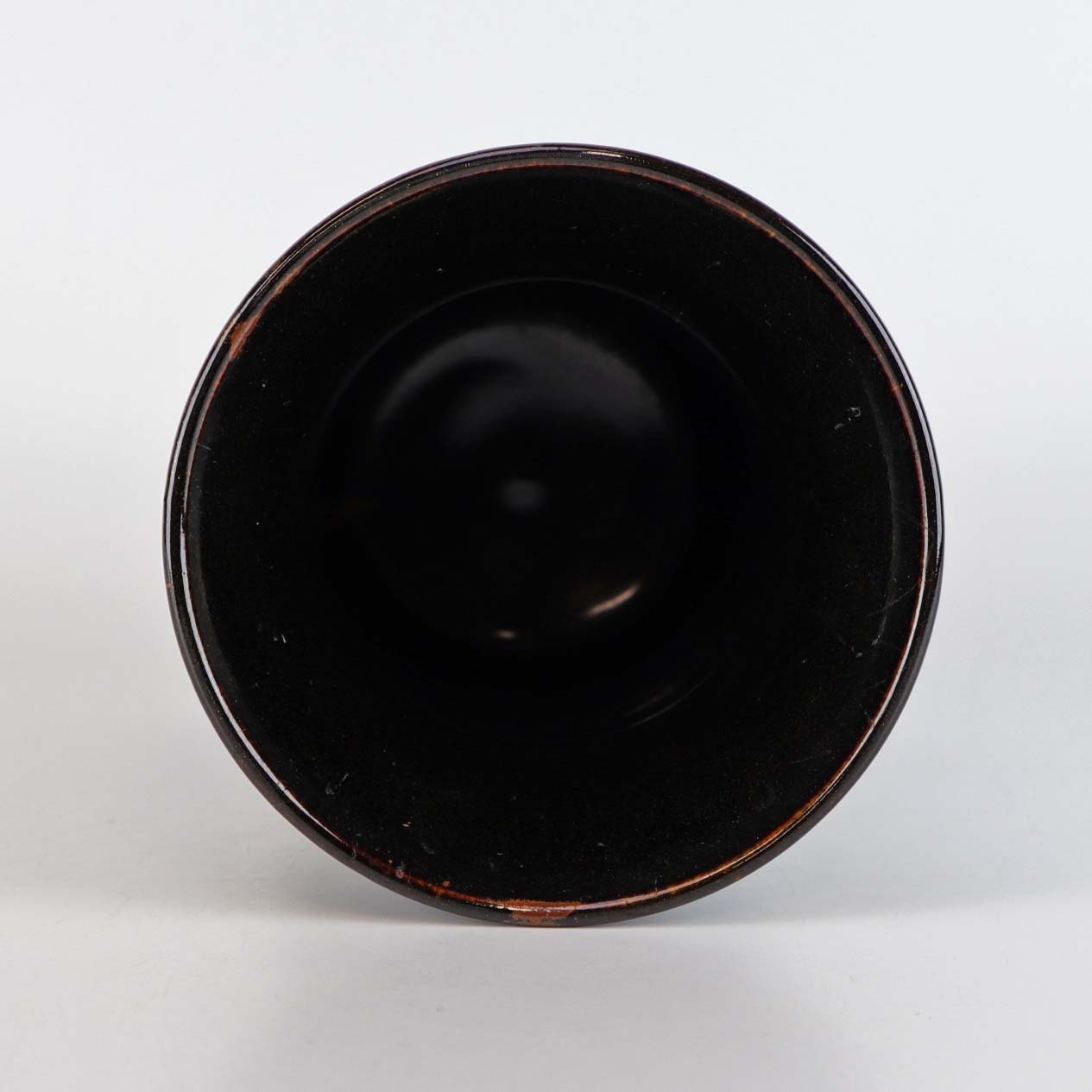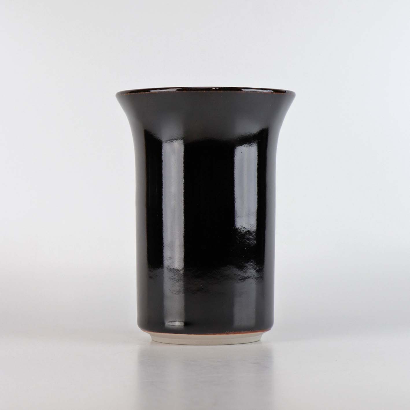 Vase i stentøj. Vasen er cylinderformet med breddere top kant og glaseret i en dyb mørkbrun farve