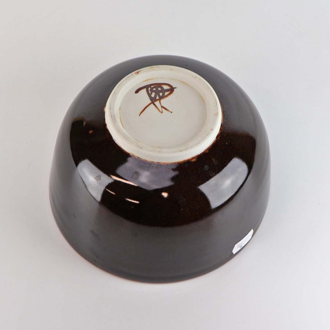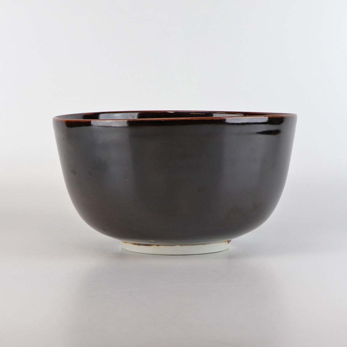 Skål i stentøj. Skålen er glaseret i en dyb mørkbrun farve.