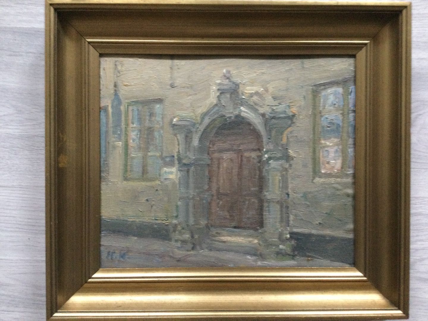 Text available in Danish: Maleri af Harald Kjær - Indgangsportal til Prästgatan 78 i Gamla Stan, Stockholm 1946.