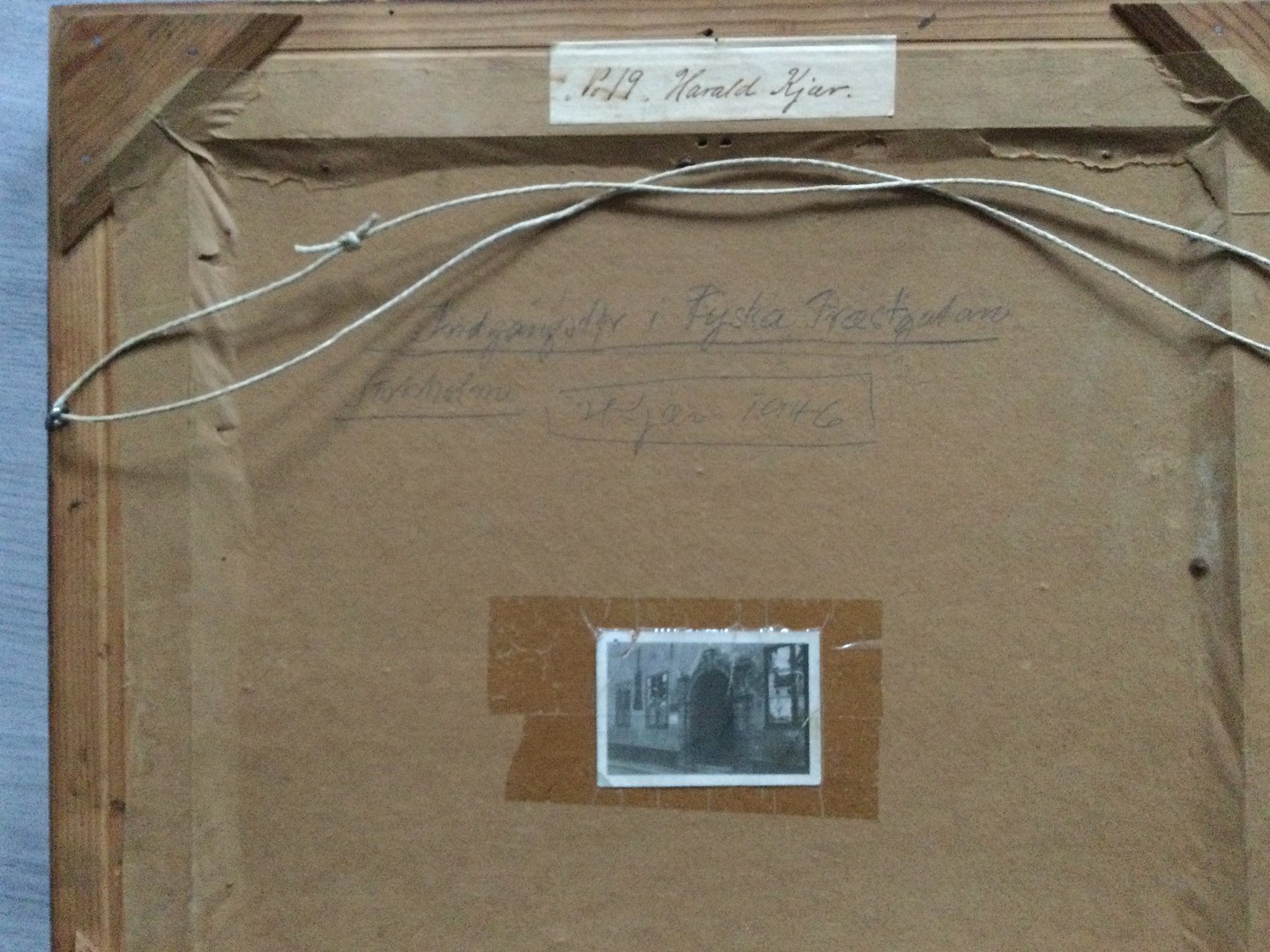 Bagpå H. Kjær 1946 samt udstillingsmærkat no. 19.
