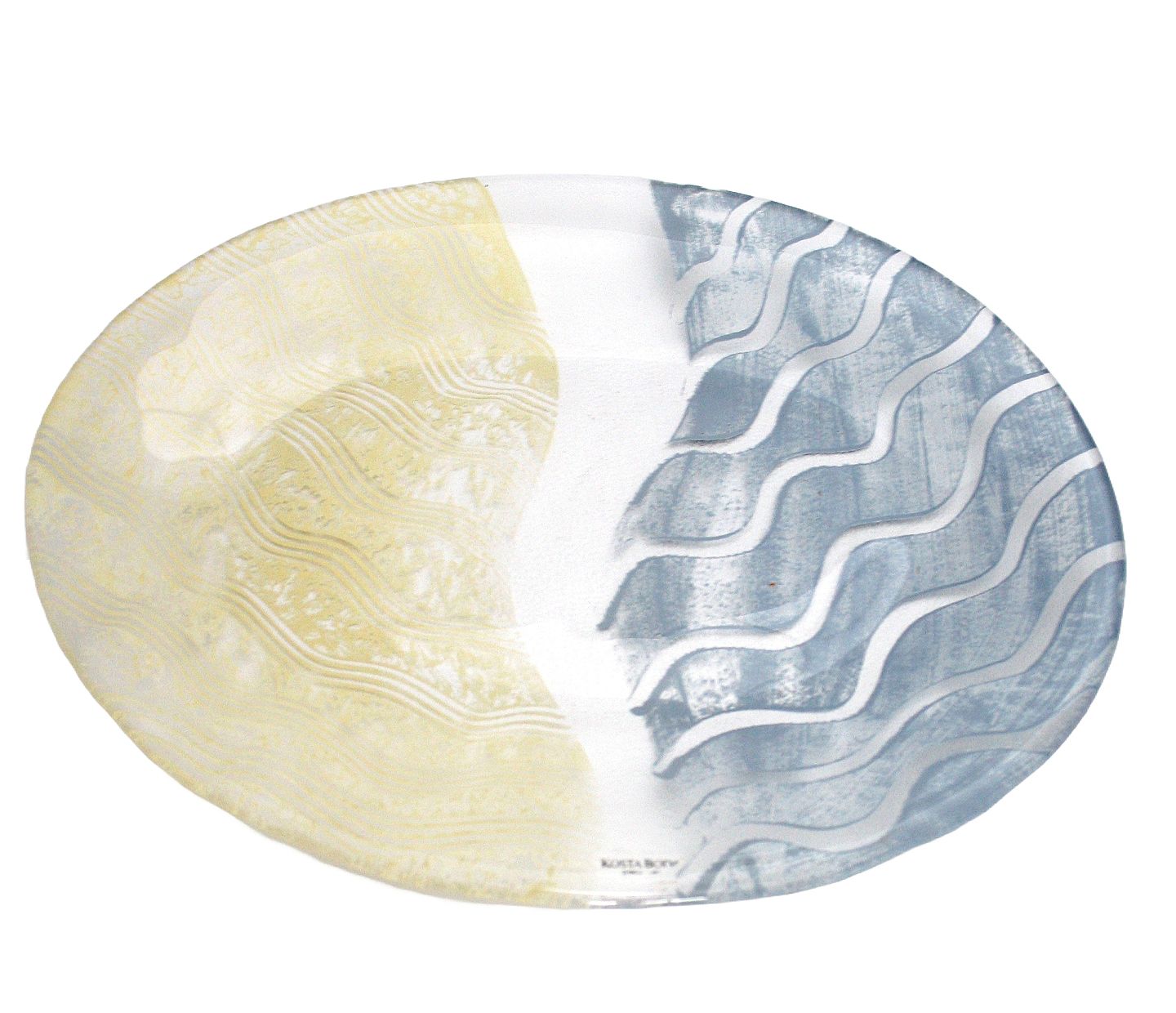 Ovalt fad. Højde 3 cm. Længde 30 cm. Bredde 22,5 cm. Pris: 275 kr. stk. Lager: 1