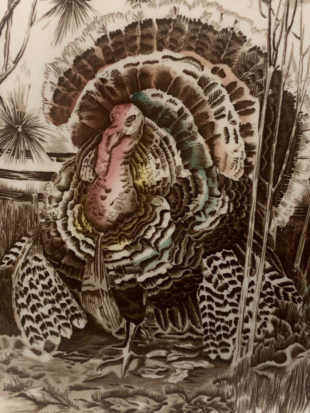 Motiv: Kalkun og skov.