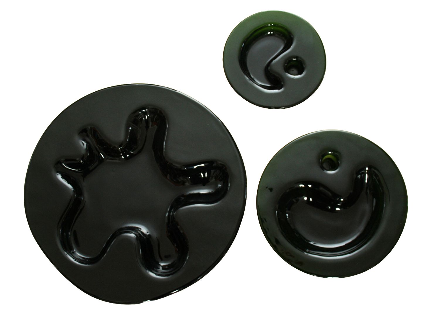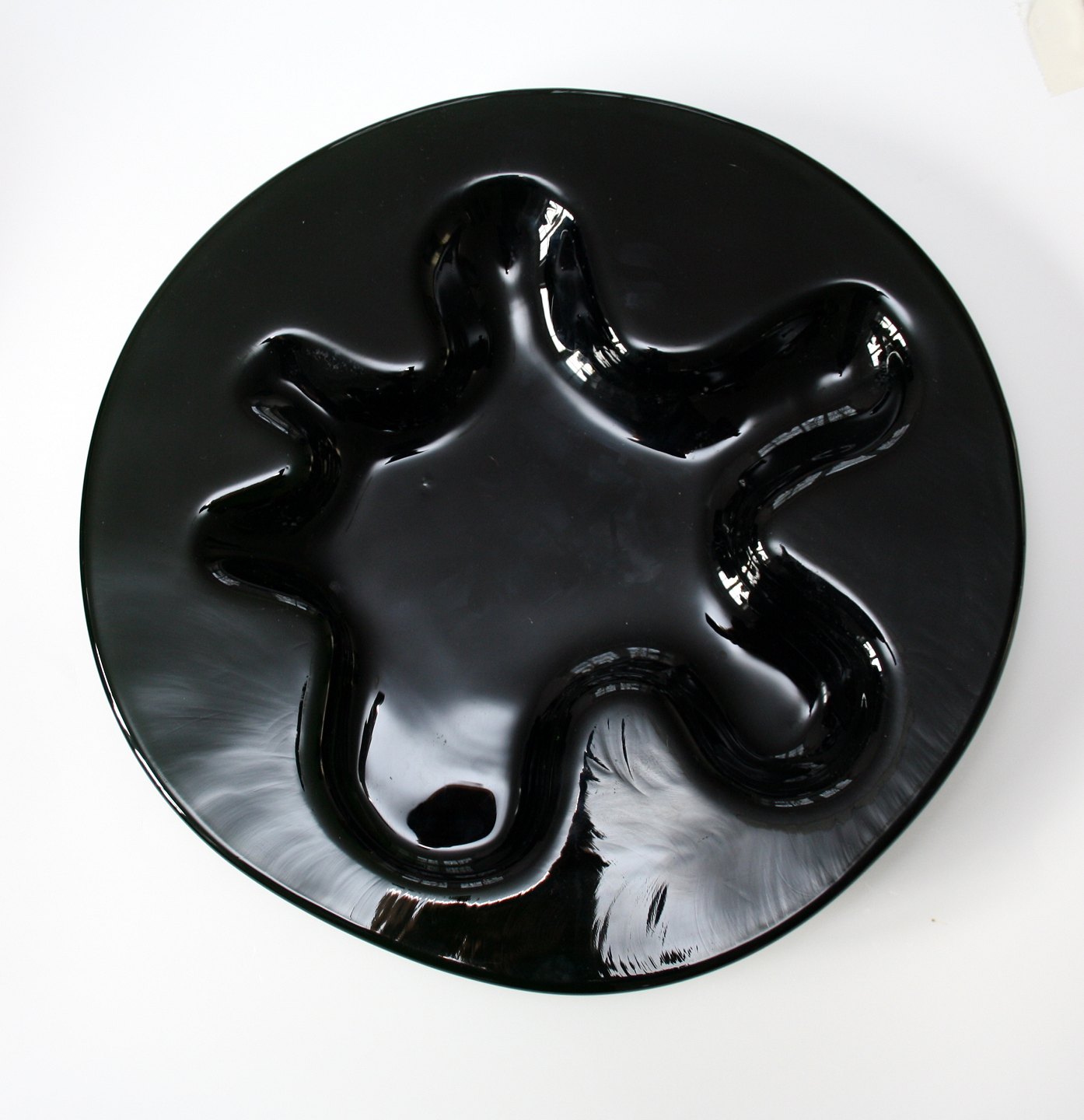 Stort organisk fad. Diameter: 37 cm. Højde 4,5 cm. Vægt 3,6 kg. Pris: 400 kr. stk. Lager: 1