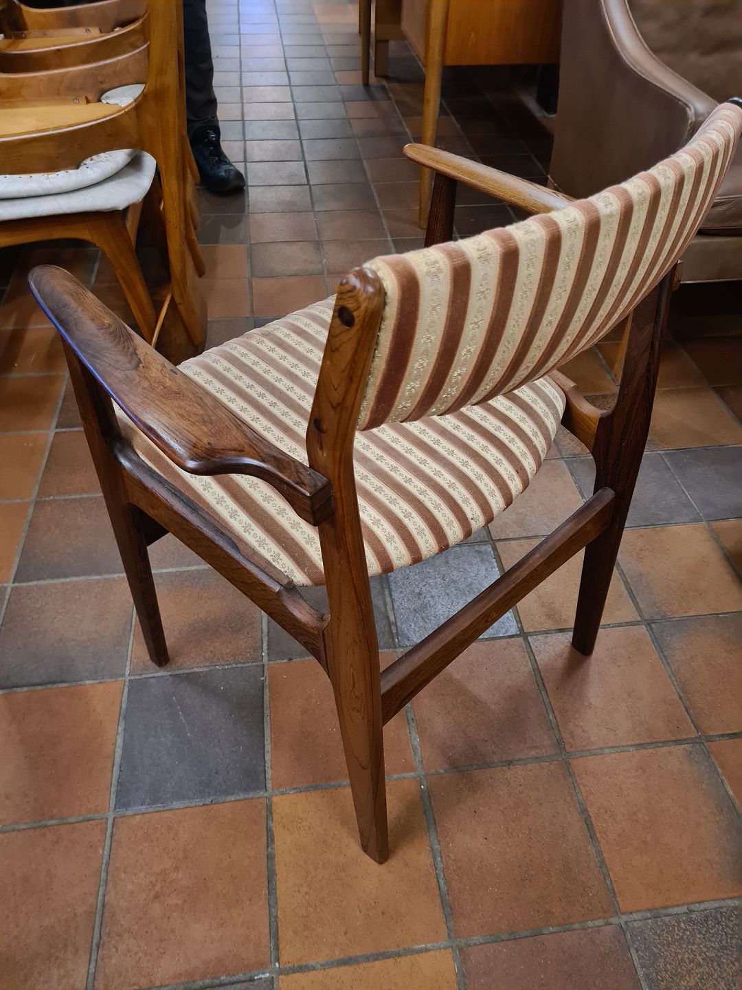 Armstol udført i palisander med sæde/ryg betrukket med uldstof.
