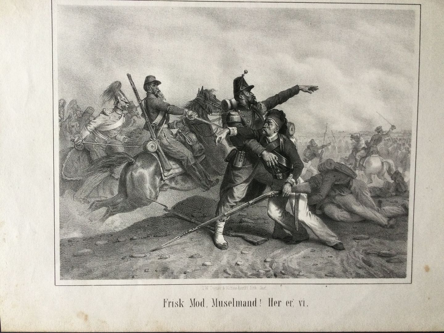 Litografi af I.W. Tegner - "Frisk Mod Muselmand! - Her er vi"