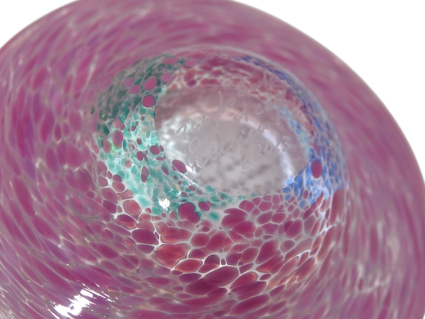 Kosta Boda kunstglas fra Sverige, miniature lyserød asiet / skål med fordybning.