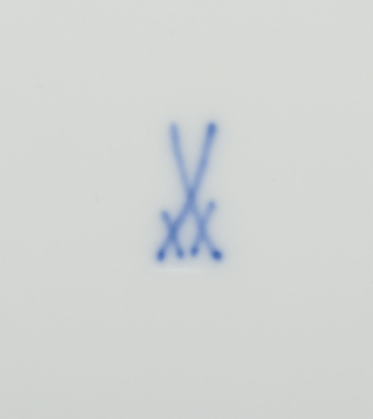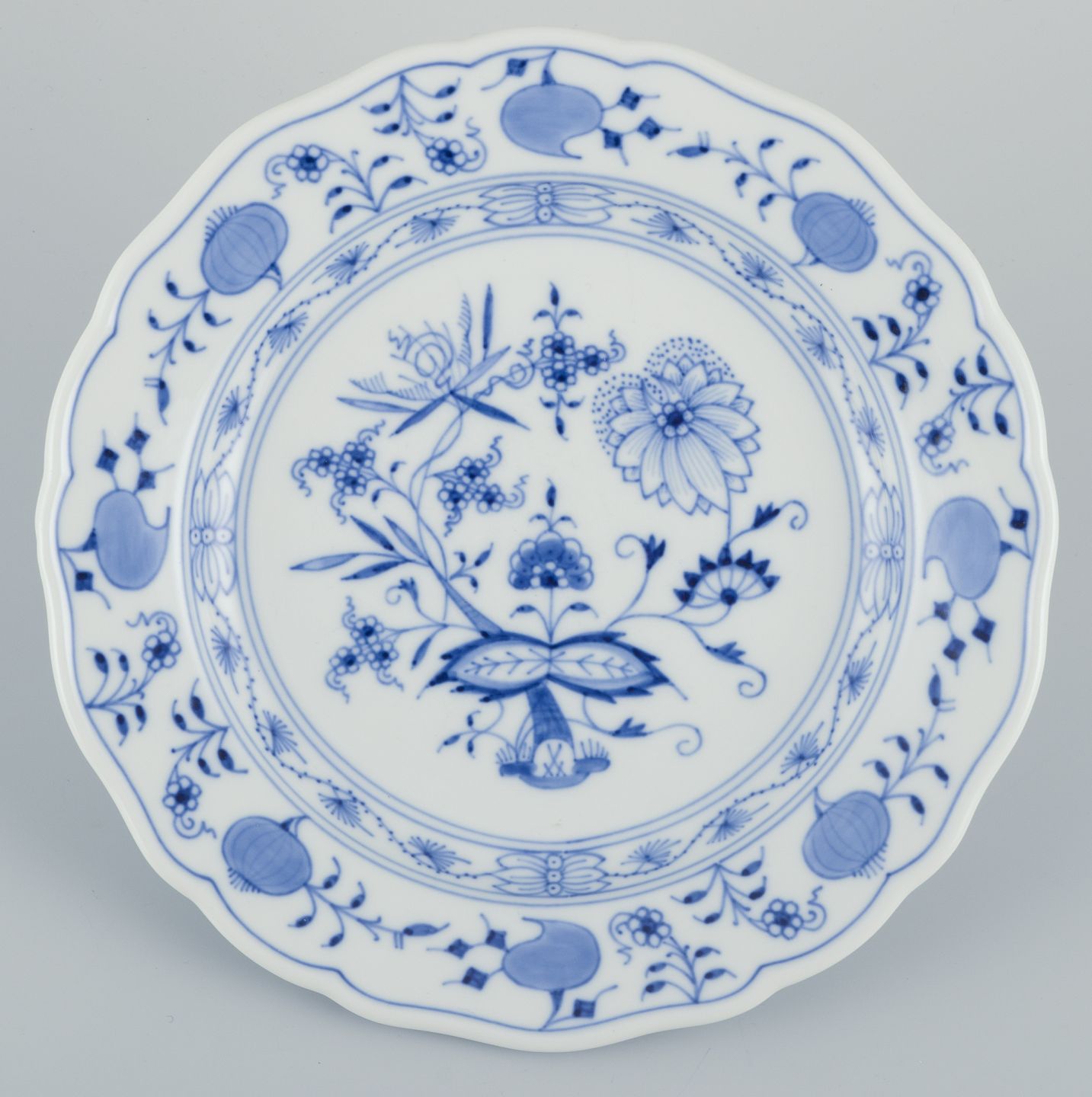 Meissen, Tyskland. Et sæt på fire Løgmønstret tallerkner i porcelæn. Håndmalet.