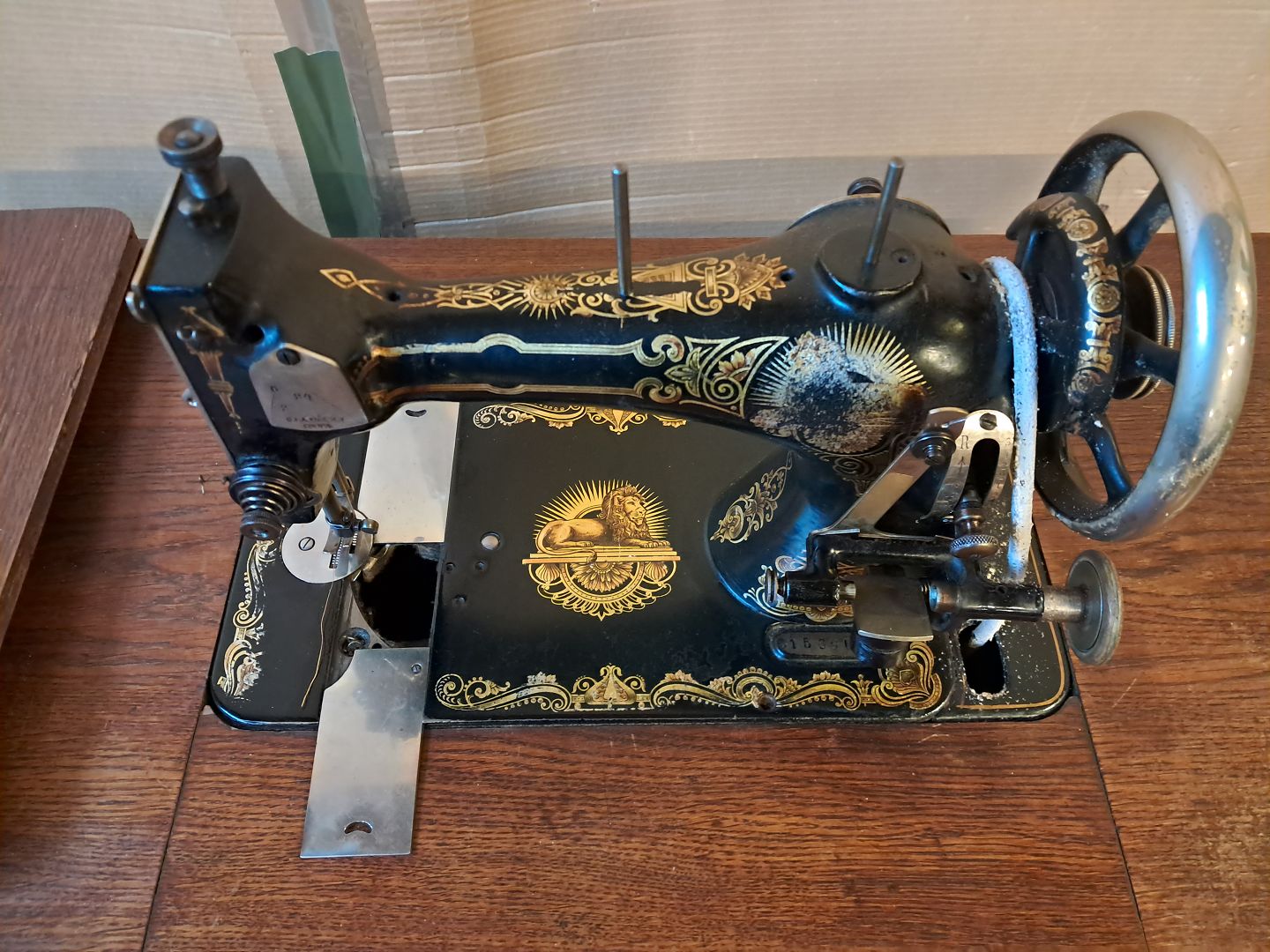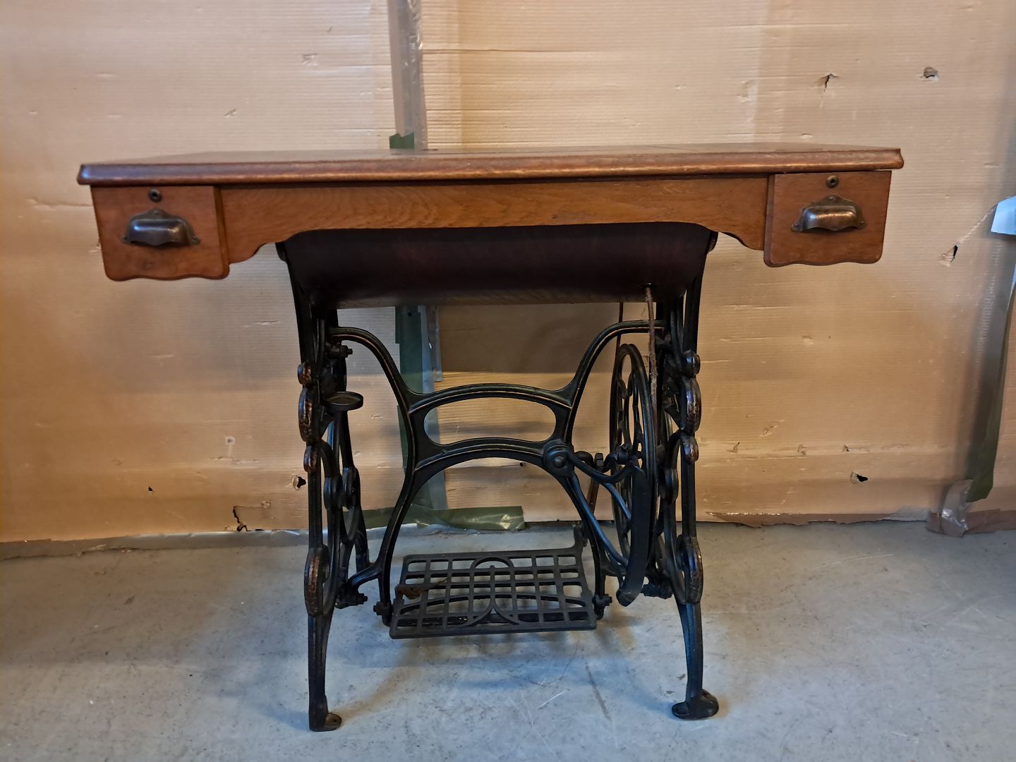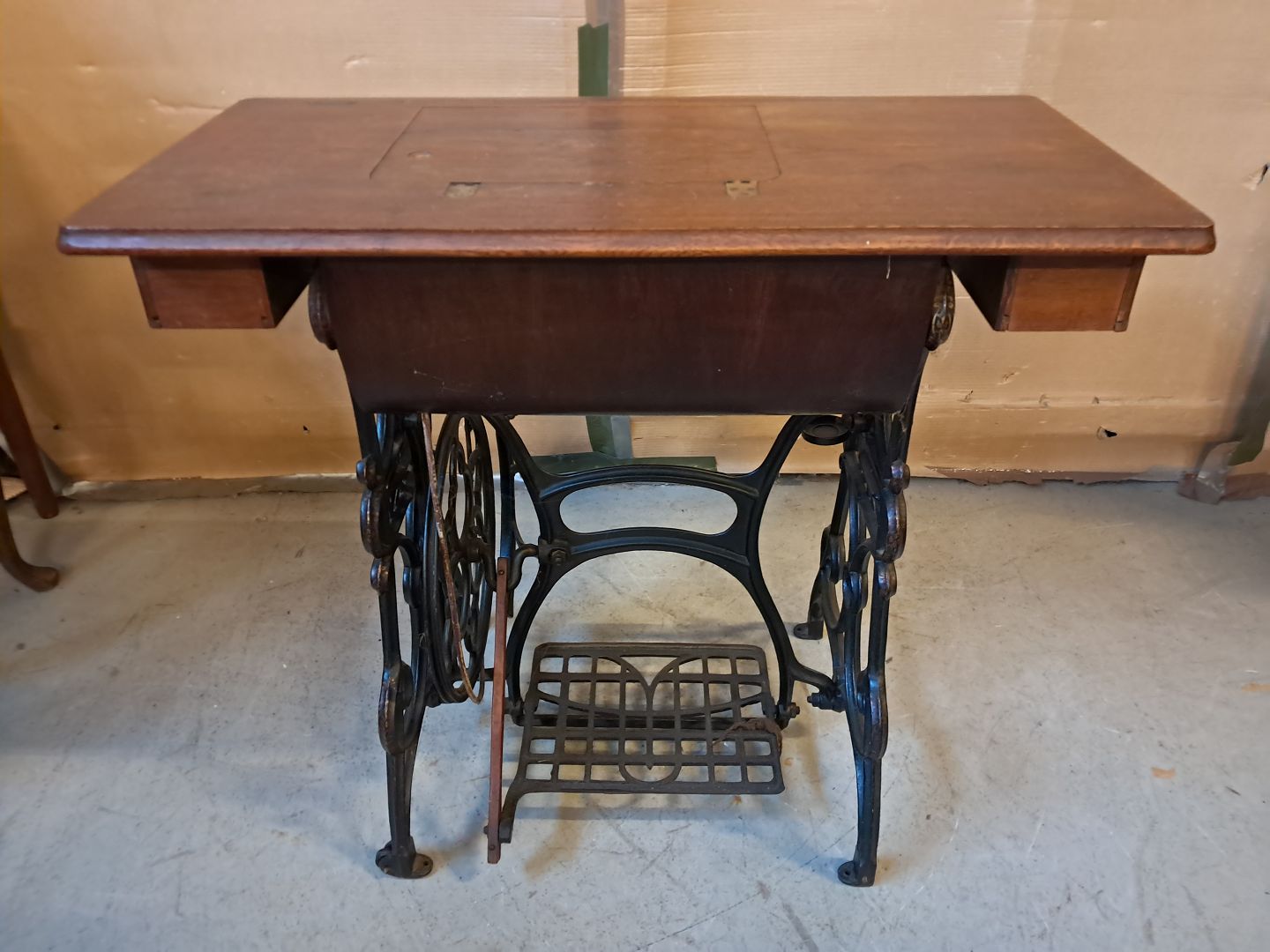Sybord i fineret egetræ og metal, fra 1910erne.