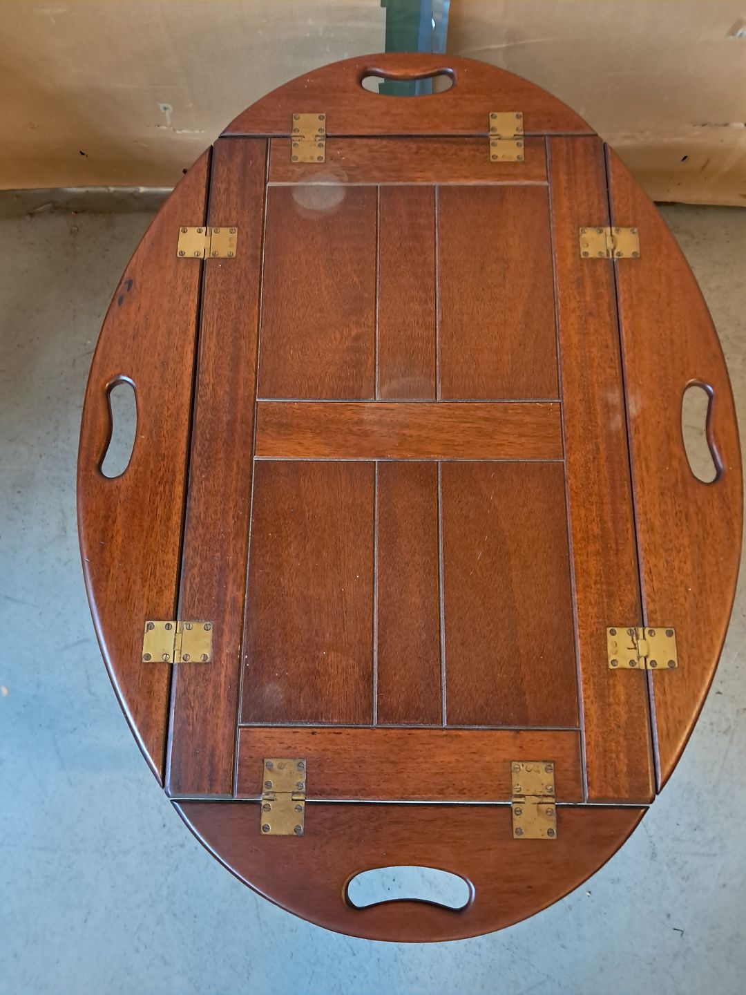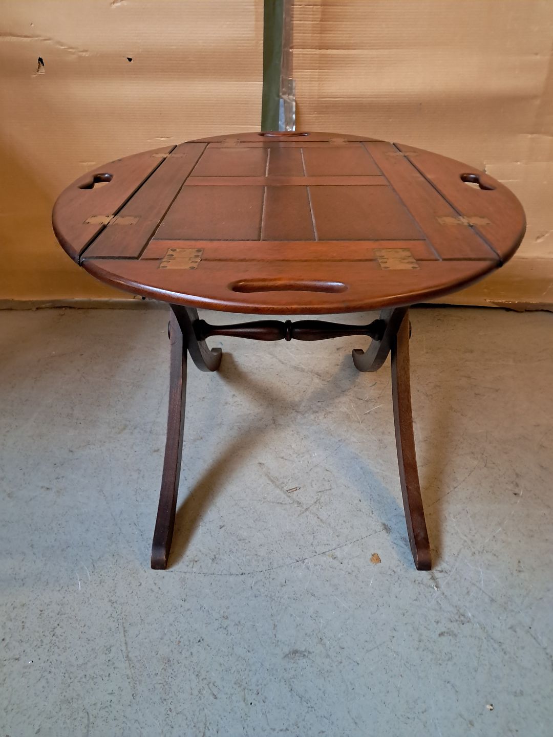 Sofabord i fineret mahogni, fra 1980erne.
