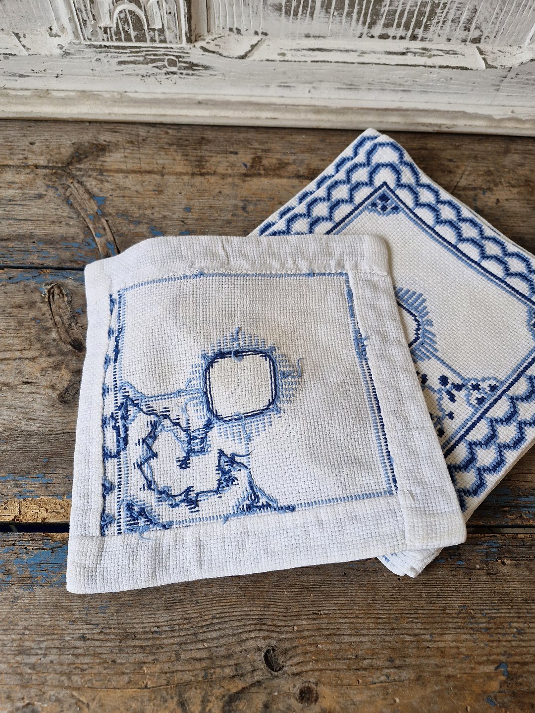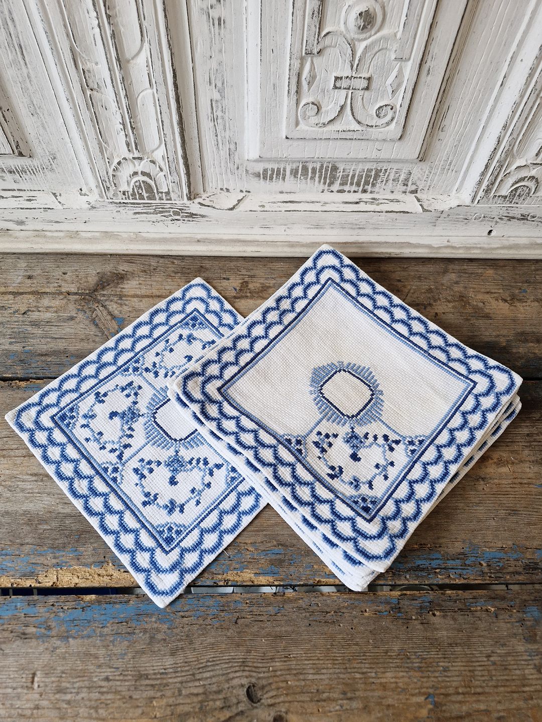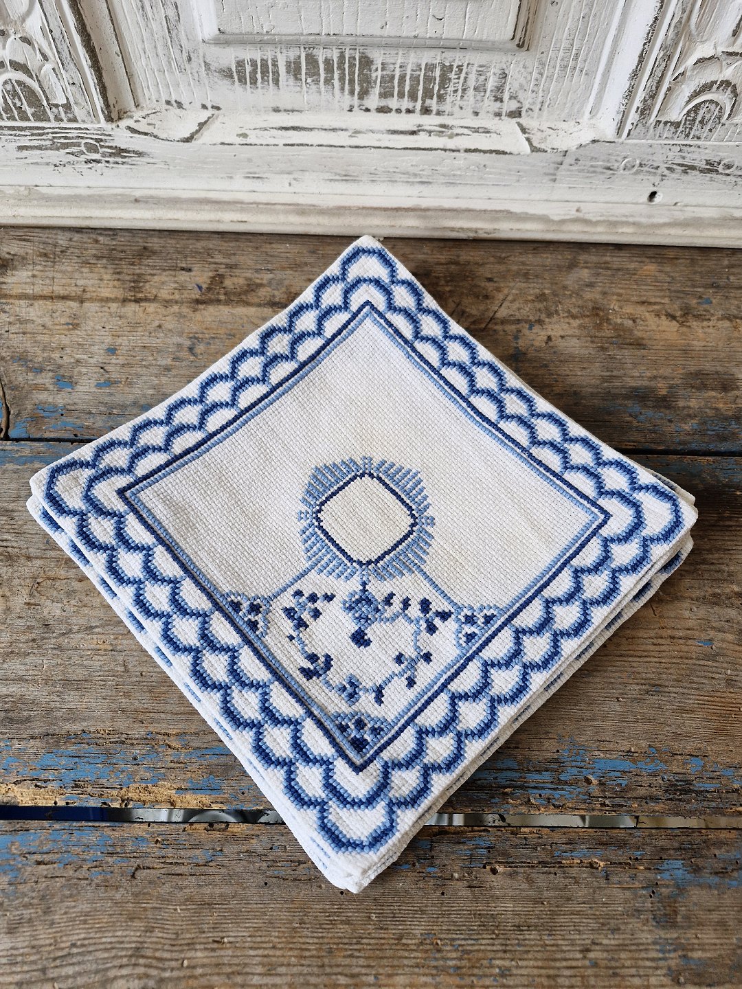 Sæt på 11 stk. mellemlægsservietter broderet med musselmalet mønster