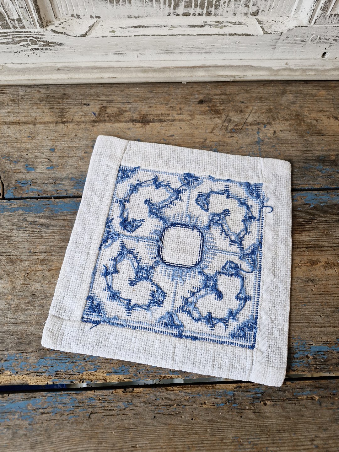Sæt på 11 stk. mellemlægsservietter broderet med musselmalet mønster.
