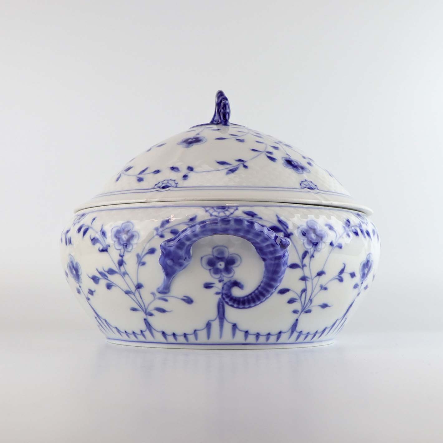 Rund terrin med låg i porcelæn fra stellet Sommerfugl