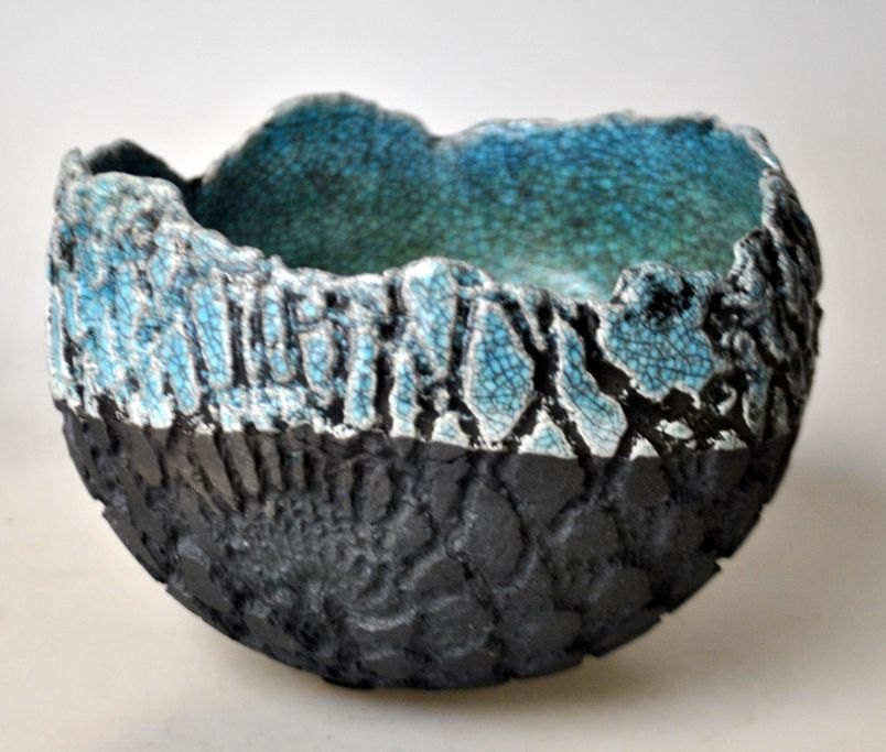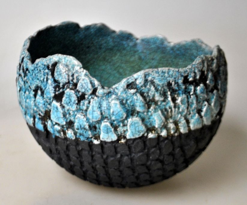 Dansk keramiker (20. årh): Skål. Raku. Med turkis glasur. H.: 8,5 cm. Dia.: 12 cm.