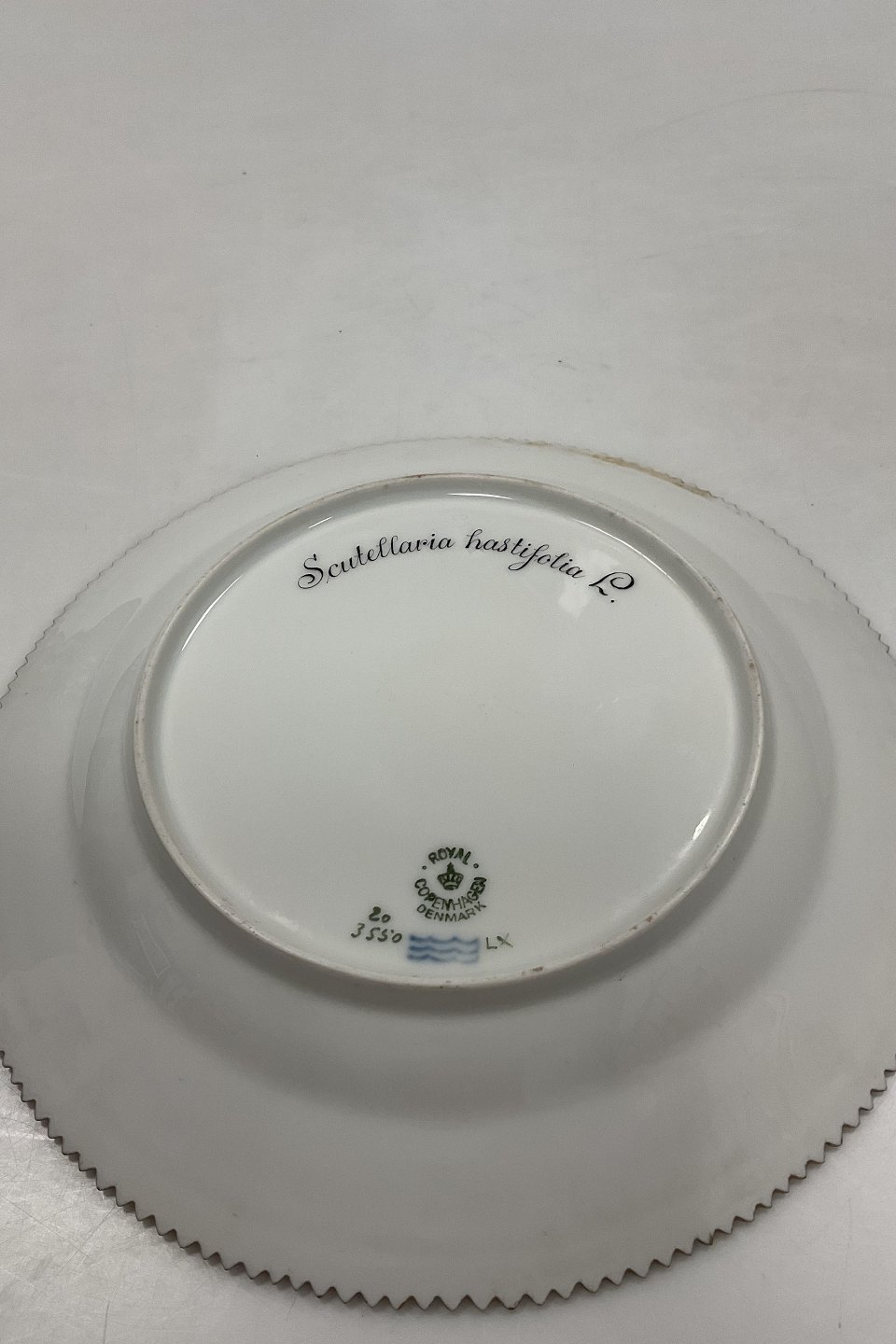 Royal Copenhagen Flora Danica Frokosttallerken No 20/3550 Måler 22 cm. 1. Sortering. Latinsk navn: Scutellaria hastifloia L
