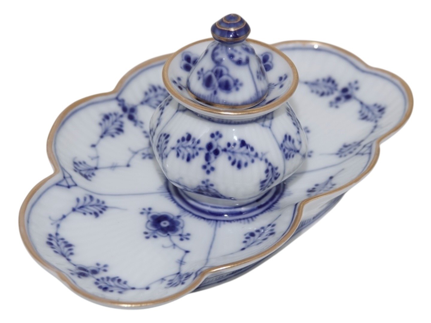 Royal Copenhagen Musselmalet Riflet med guldkant, sjældent blækhus.