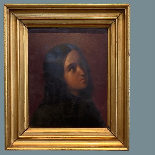 Unknown artist. Oil on cardboard mounted on board. Study of a girl. 19th century. Dimensions: 38.5 x 33 cm (27 x 22 cm).