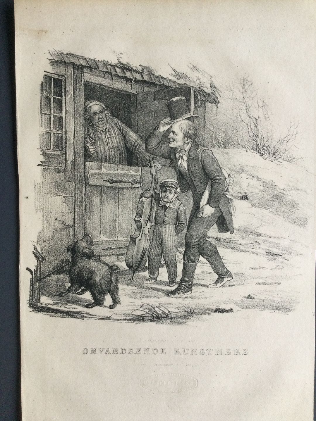 Litografi af Em. Bærentzen - Omvandrende Kunstnere.
