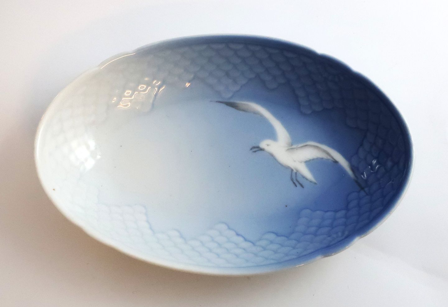 Bing & Grøndahl. Måge stel uden guld. Ovalt fad. Model 38. Længde 18 cm. Bredde 12 cm. (2 sortering)