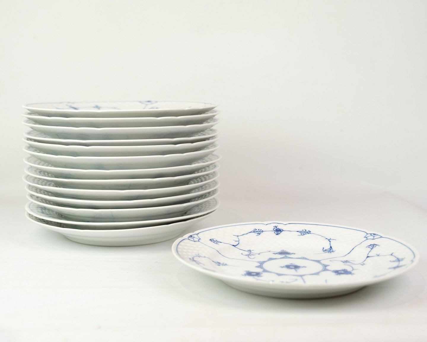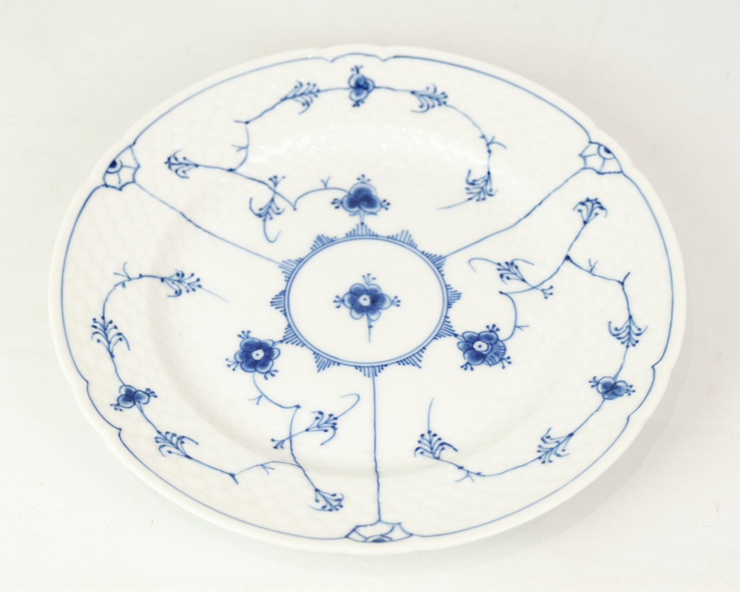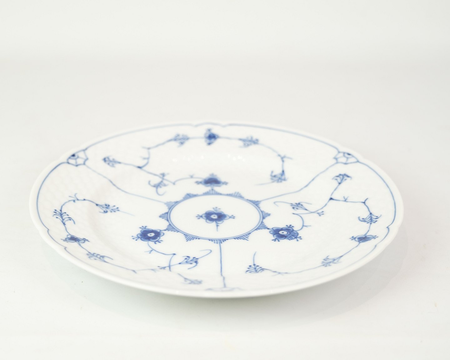 Dinner plate no. 025 from Bing & Grondahl. Made of porcelain with classic blue painted blue fluting decoration.
