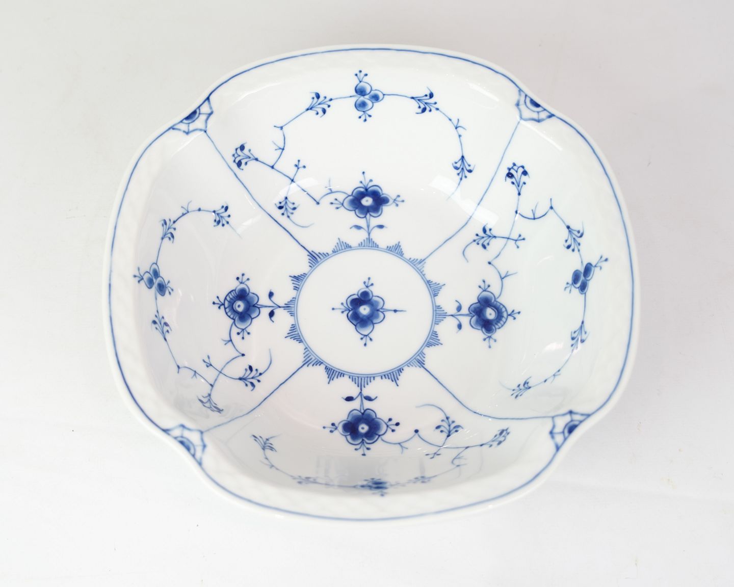 Potato bowl no. 43 from Bing & Grondahl. Made of porcelain with classic blue painted blue fluting decoration.