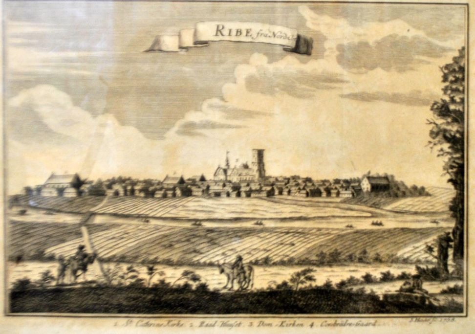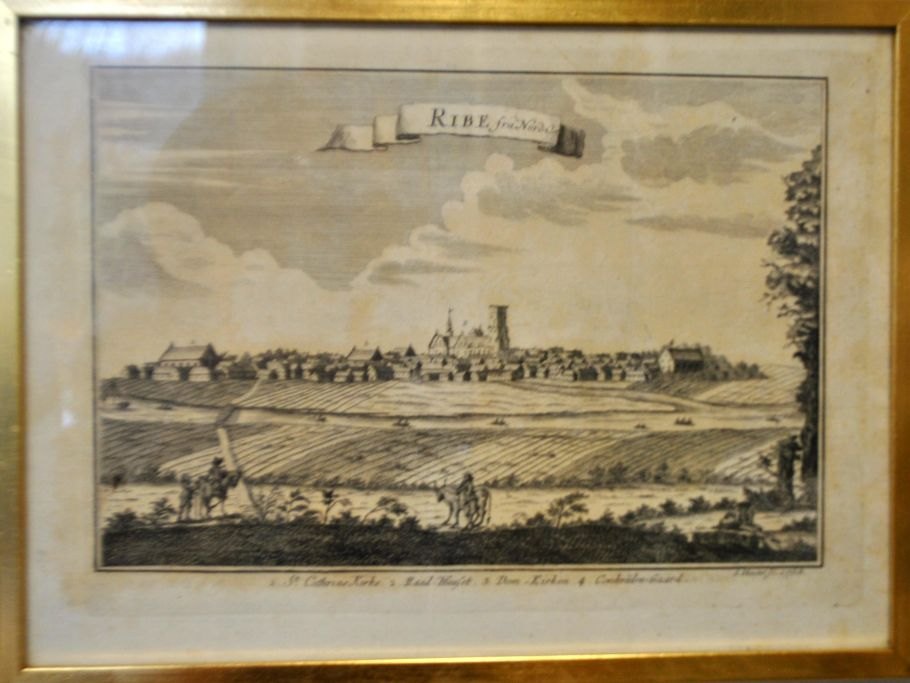Haas, Jonas (1720 - 1775) Denmark: Ribe from the north. Copper engraving, 1768. Original copper engraving. Signed: I. Haas 1768. H: 17 cm. W: 25 cm.
