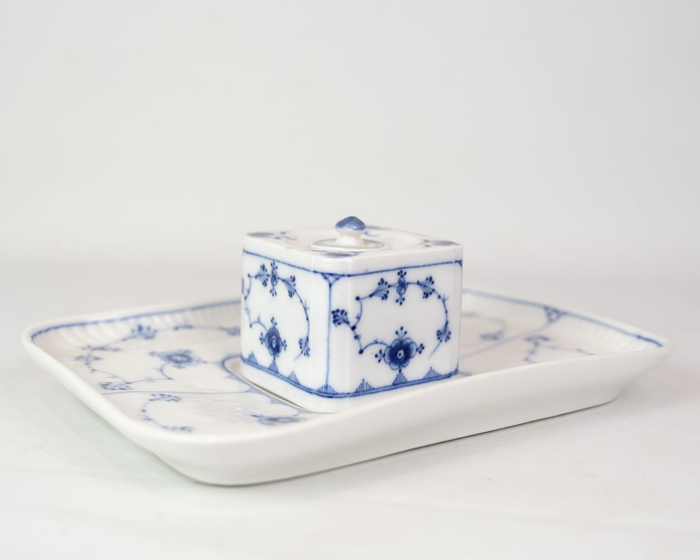 Blækhus / Skrivesæt - Musselmalet Riflet - Royal Copenhagen - Dekorationsnummer 128