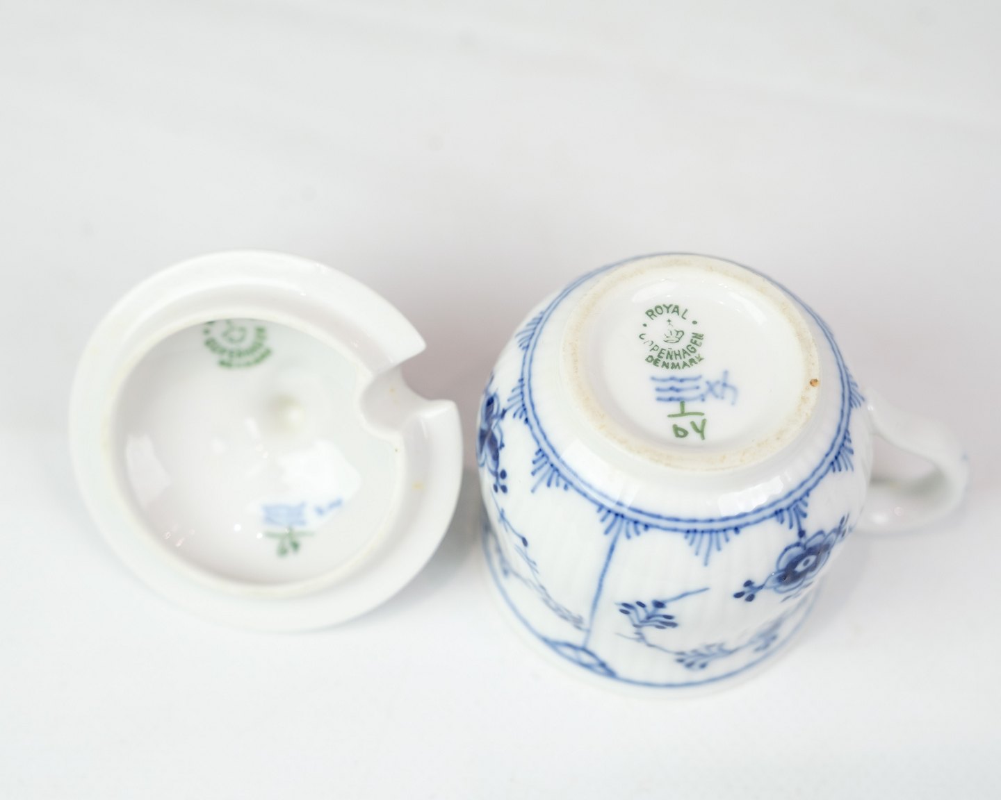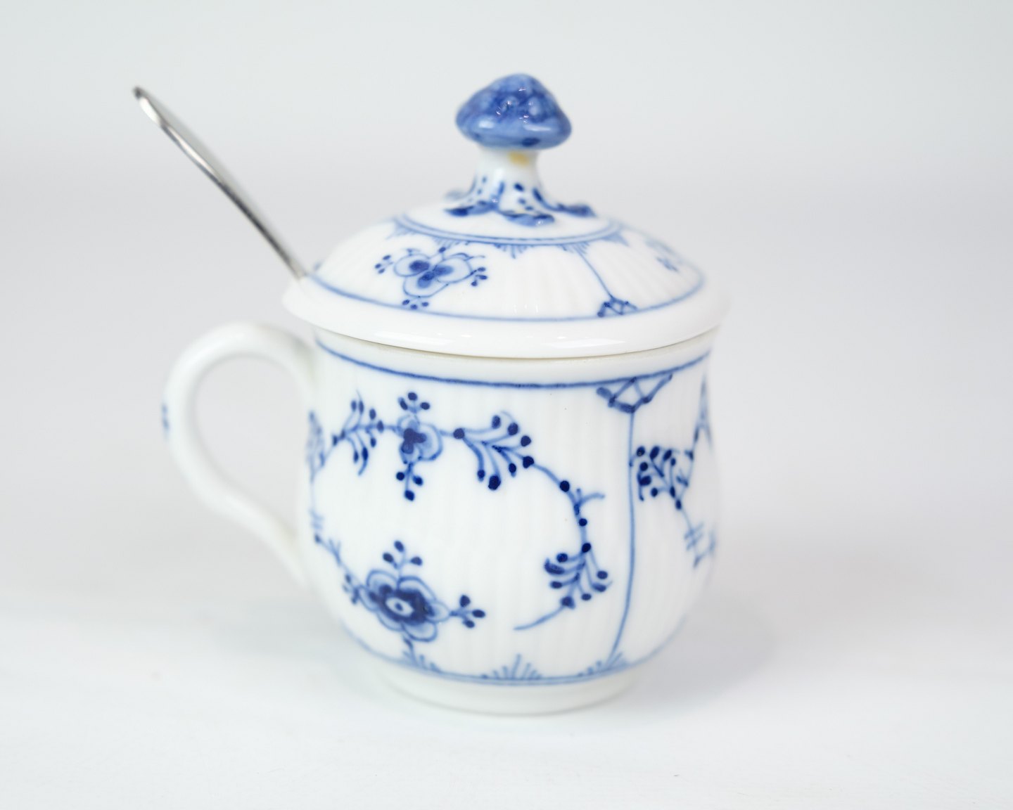 Crémekop med låg af mønstret Musselmalet riflet fremstillet af Royal Copenhagen med model nr. 64 / 64A.