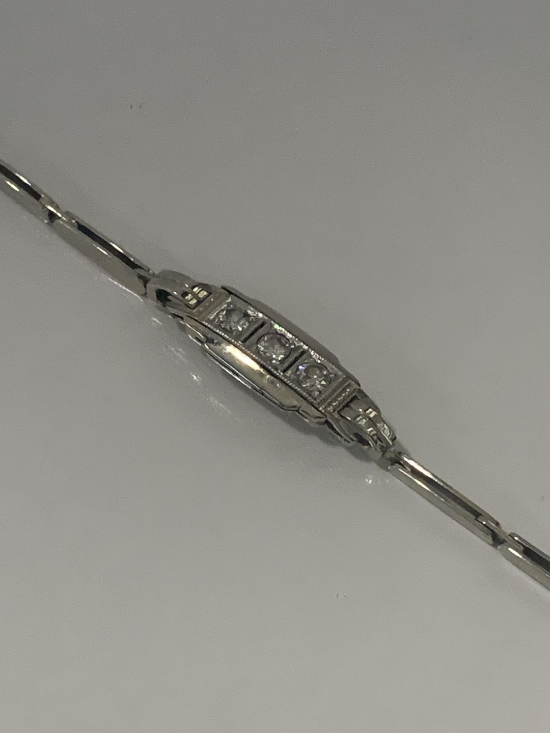 Smuk og tidløs armbånd i hvidguld med indlagt tre diamanter.