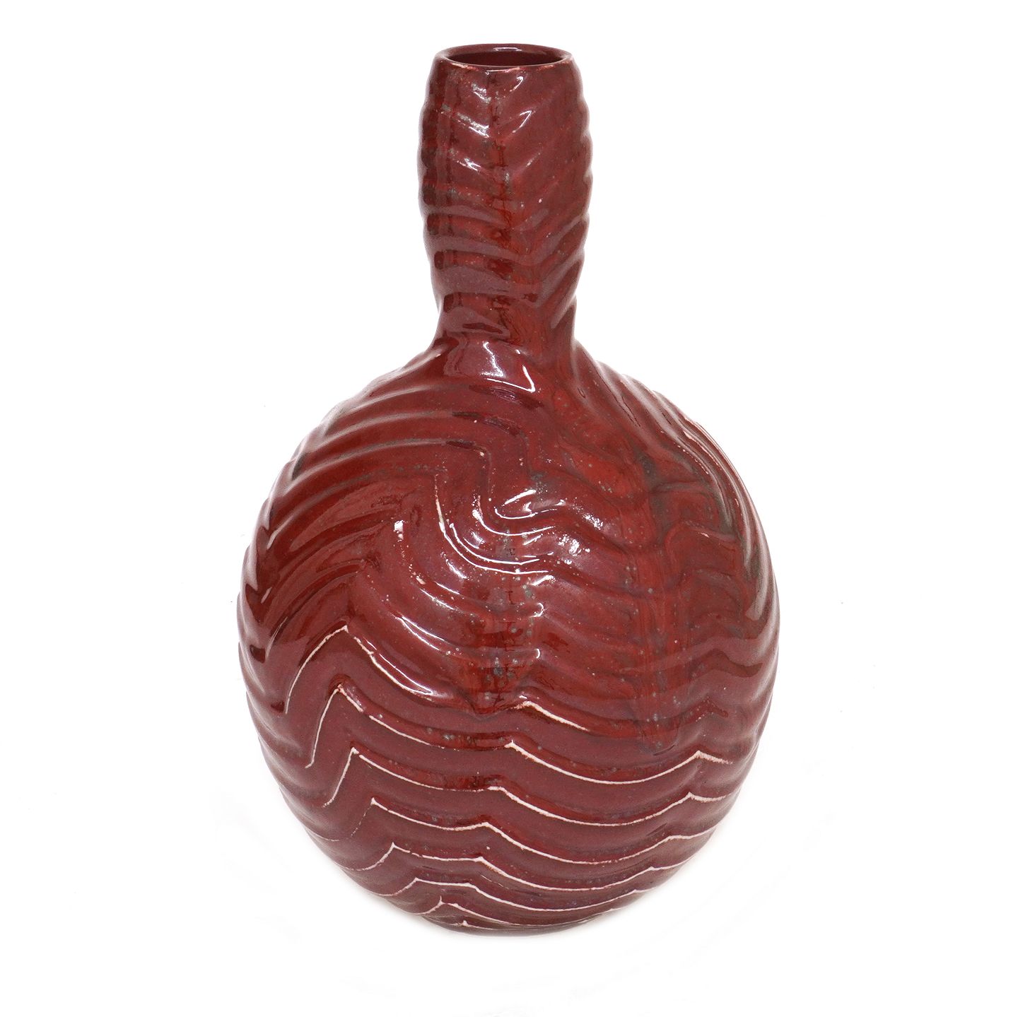 Stor Per Weiss stentøjsvase med riflet dekoration og okseblodsglasur