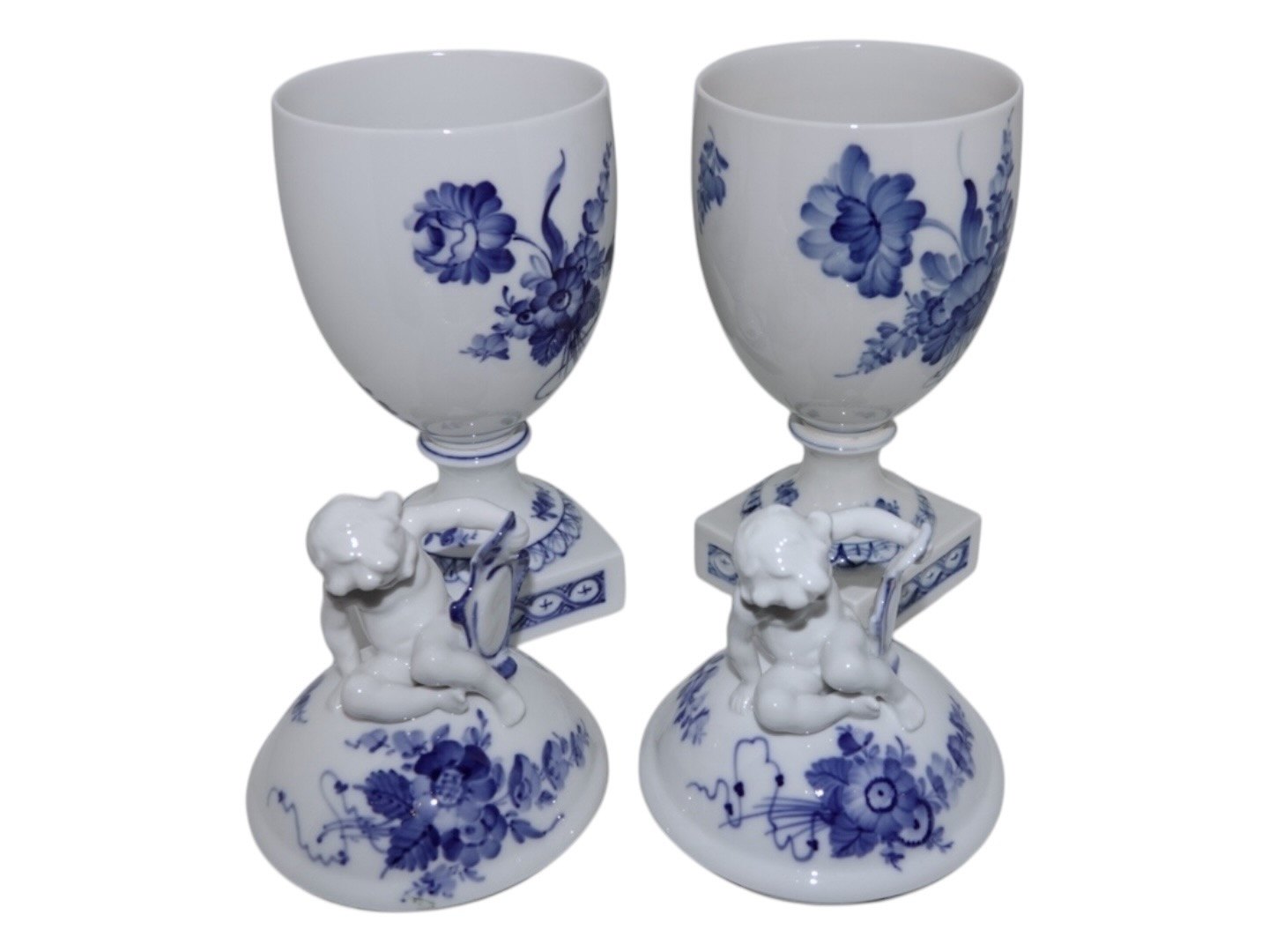 Royal Copenhagen Blå Blomst Svejfet, lågkrukke med putti figur.
