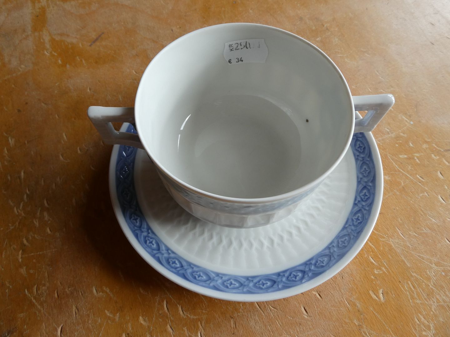Blå Vifte porcelæn, sæt stor bouillonkop med underkop
