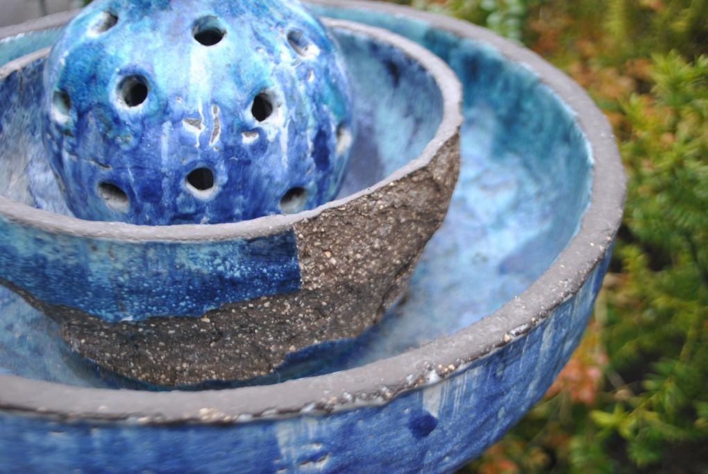 Schmidt, Louis Rosen (1943 - 1993) Danmark: Vandfontæne. Glaseret blålig keramik.