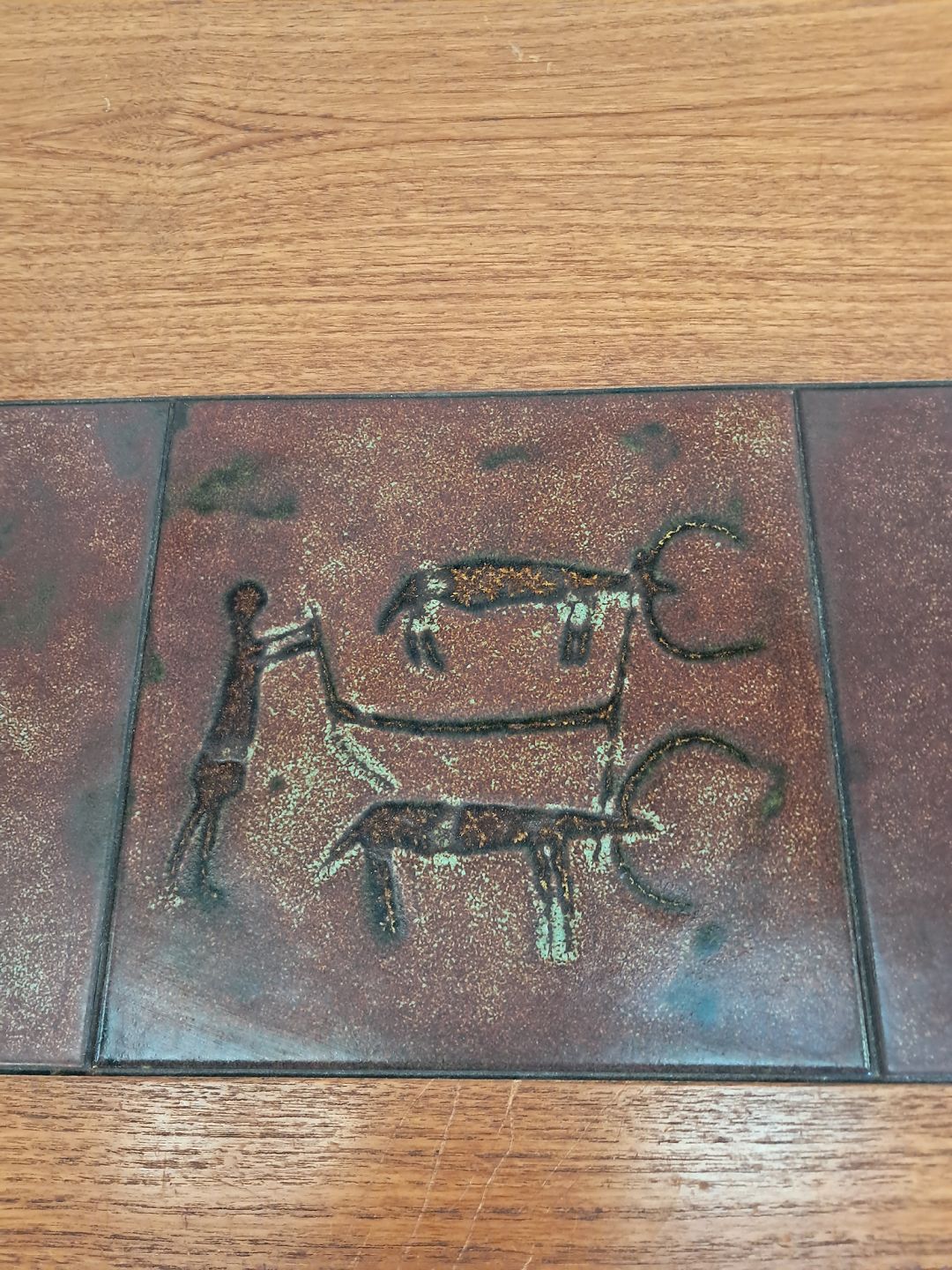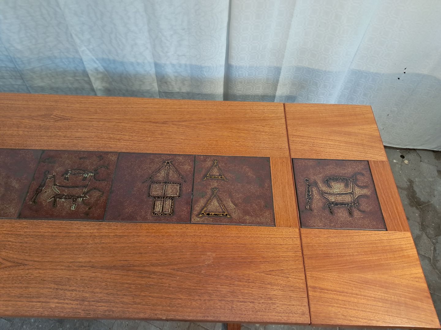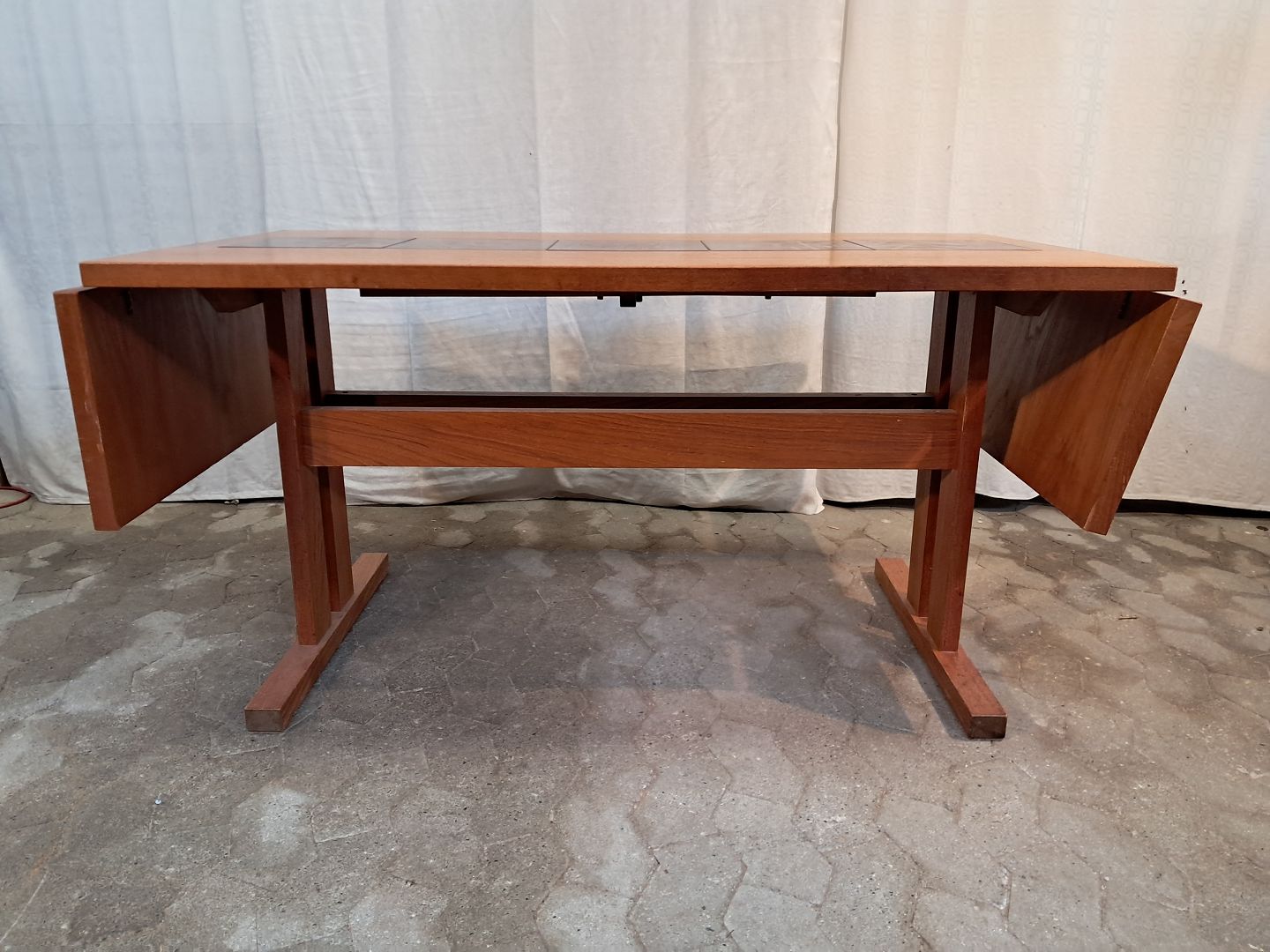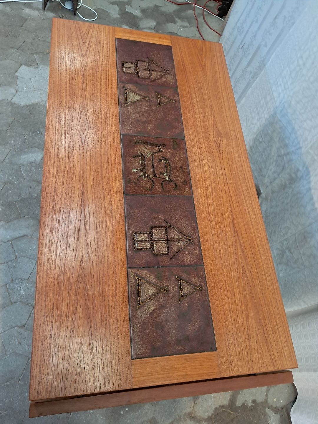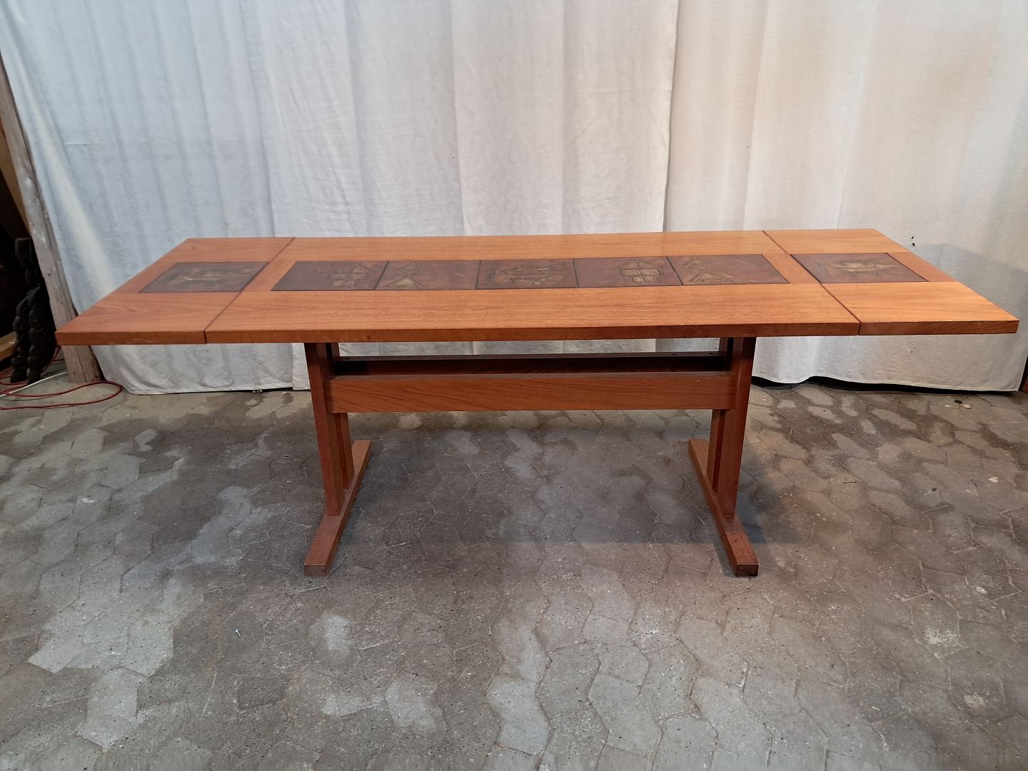 Spisebord i fineret teaktræ og kakler, fra 1970erne.