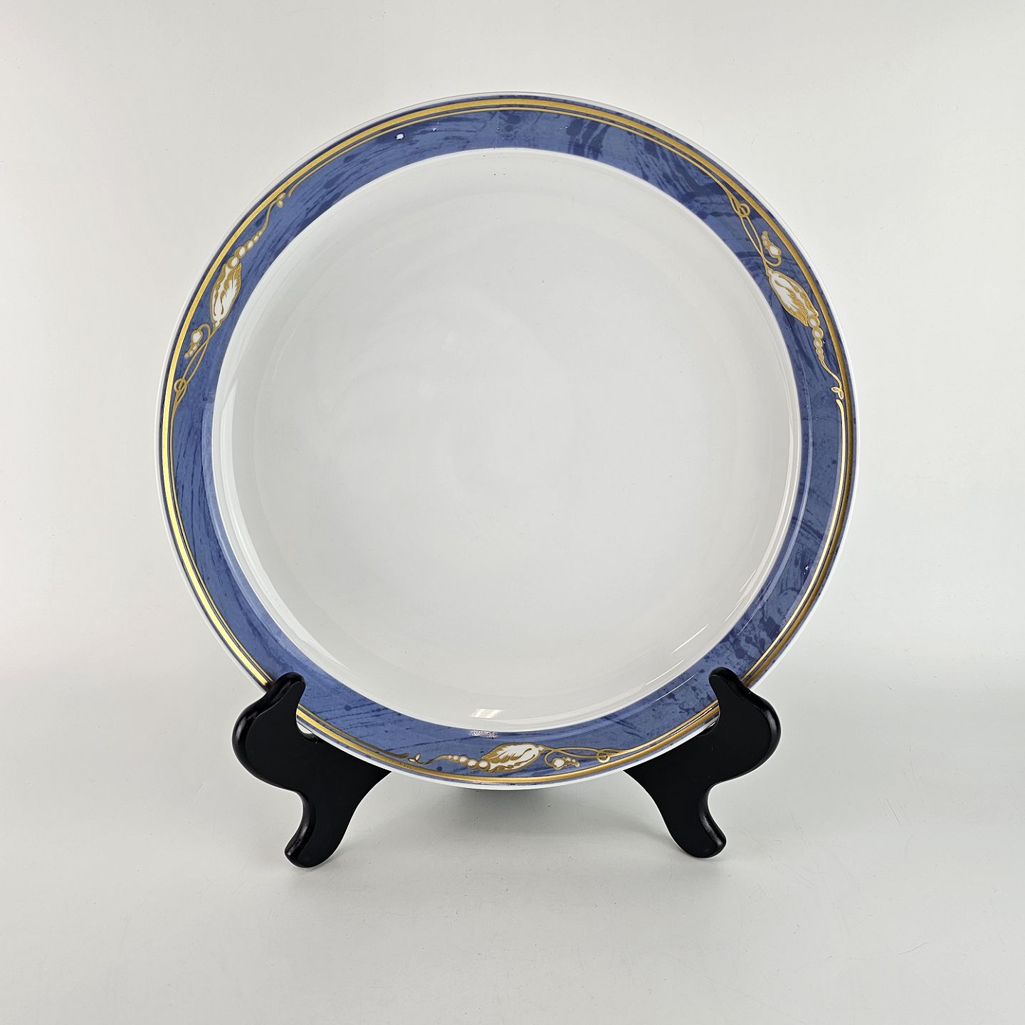 Tallerken med lyseblå marmoret bort dekoreret med gylden blomsterknop.