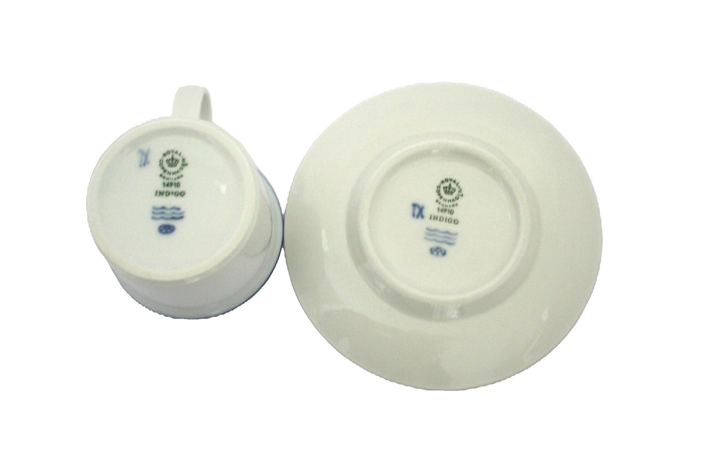 Text available in Danish: Tekop med underkop, Indigo, Royal Copenhagen