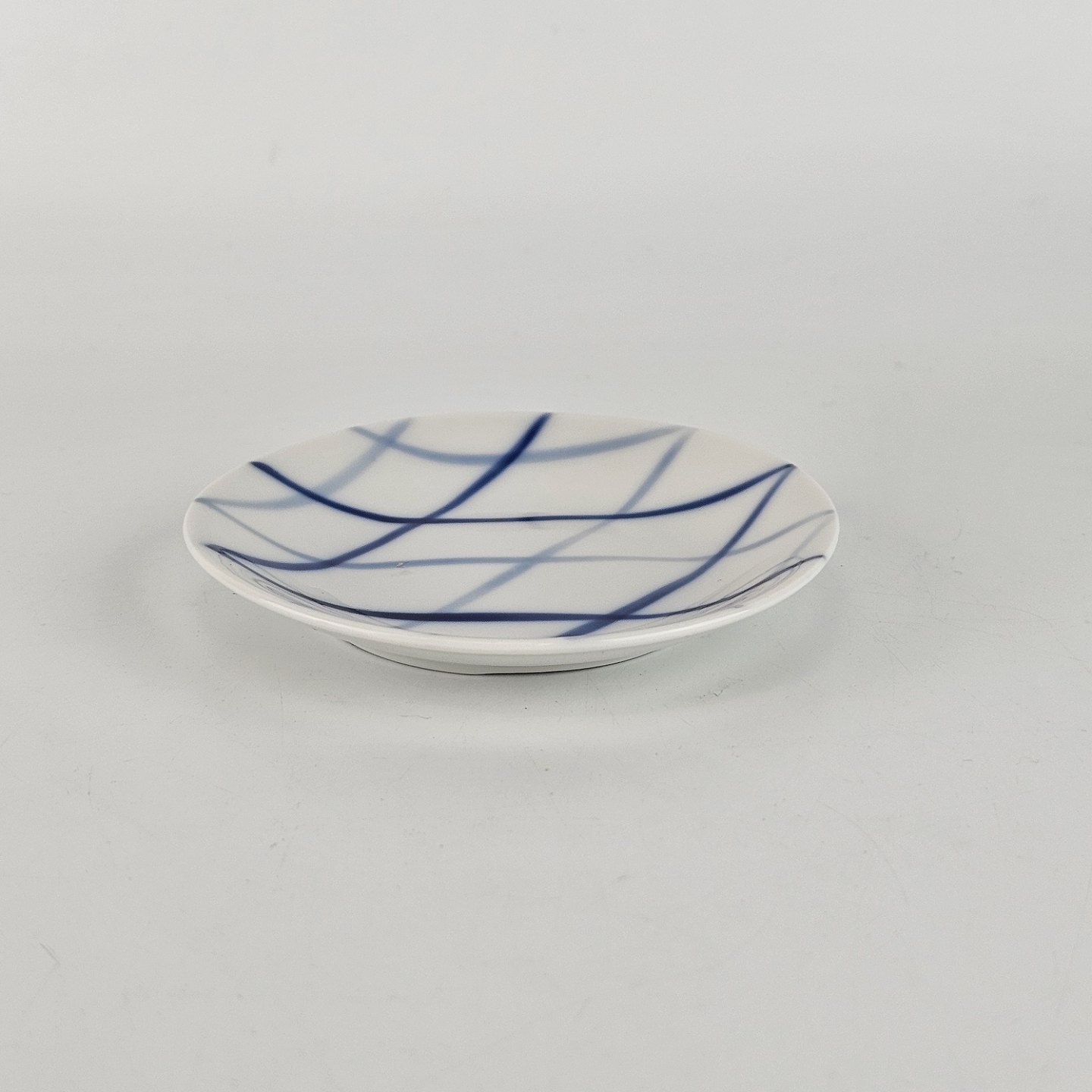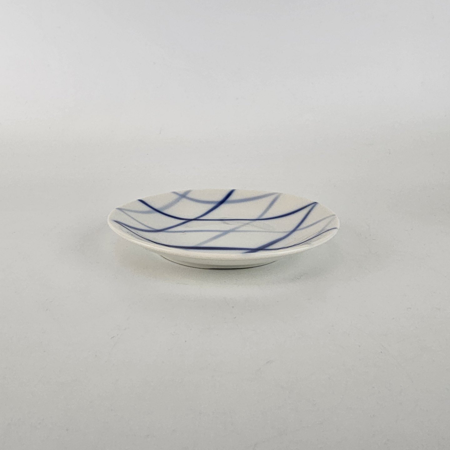 Blå Flamme er hvidt ildfast porcelæn, dekoreret med blå striber, der ligner flammer.