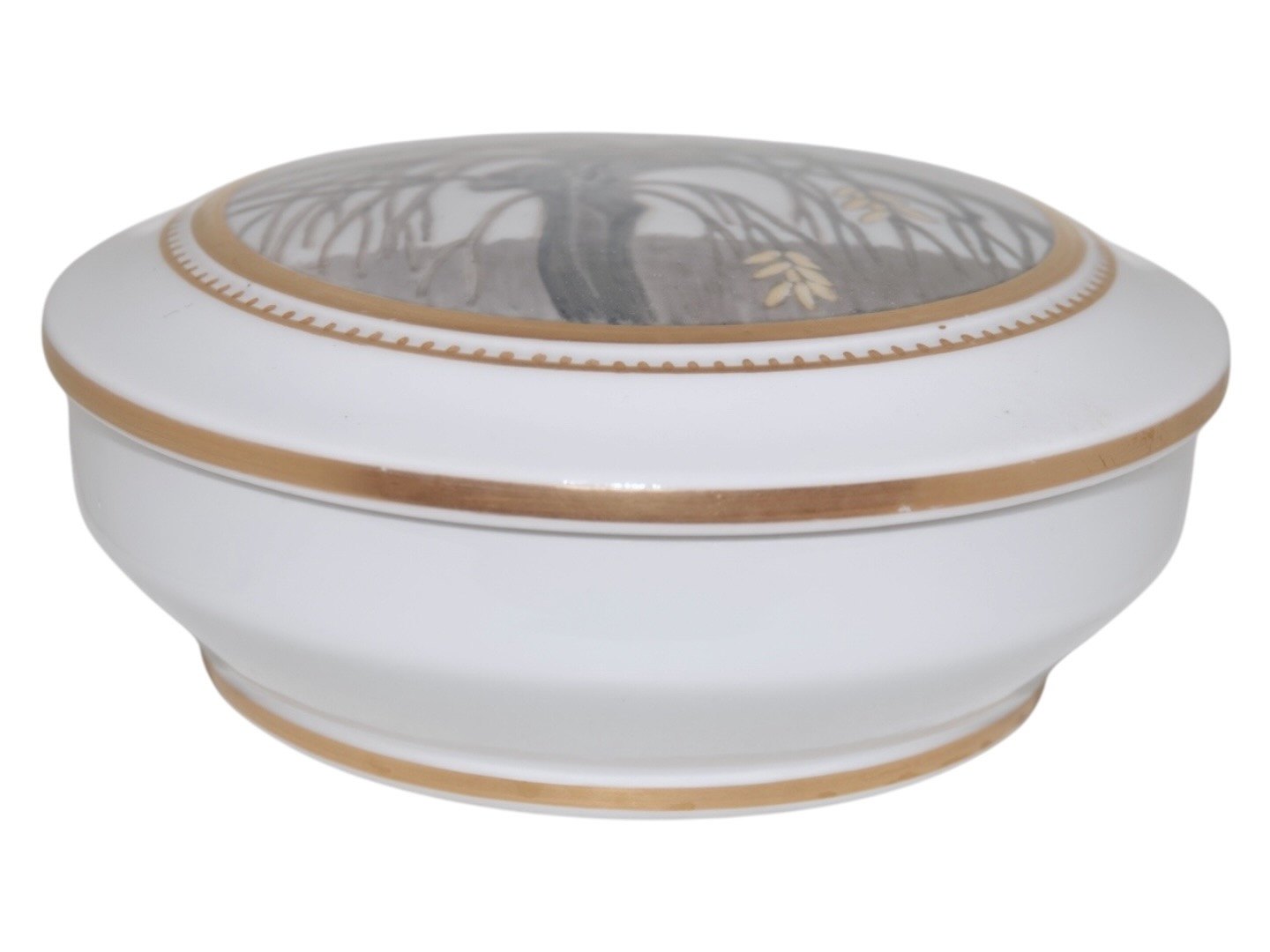 Royal Copenhagen Art Nouveau, skål med låg med blomster.