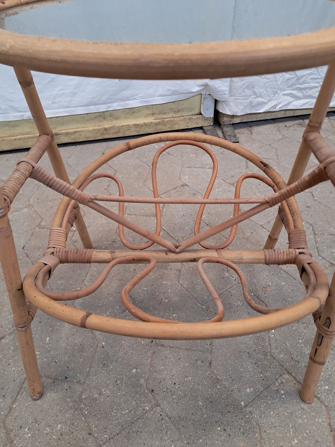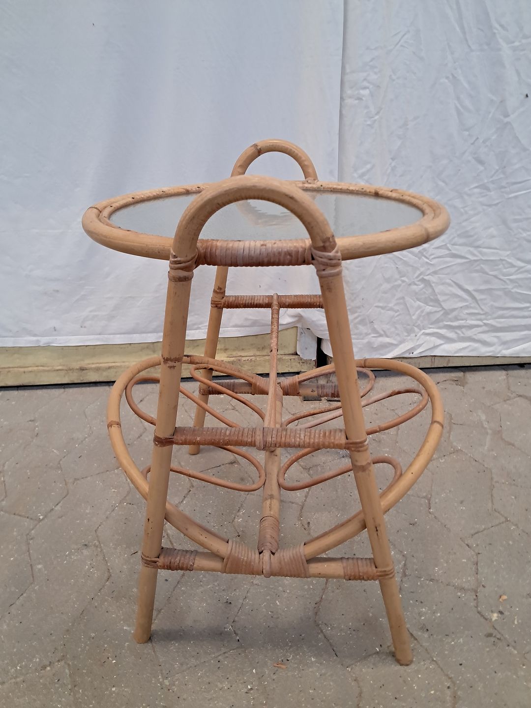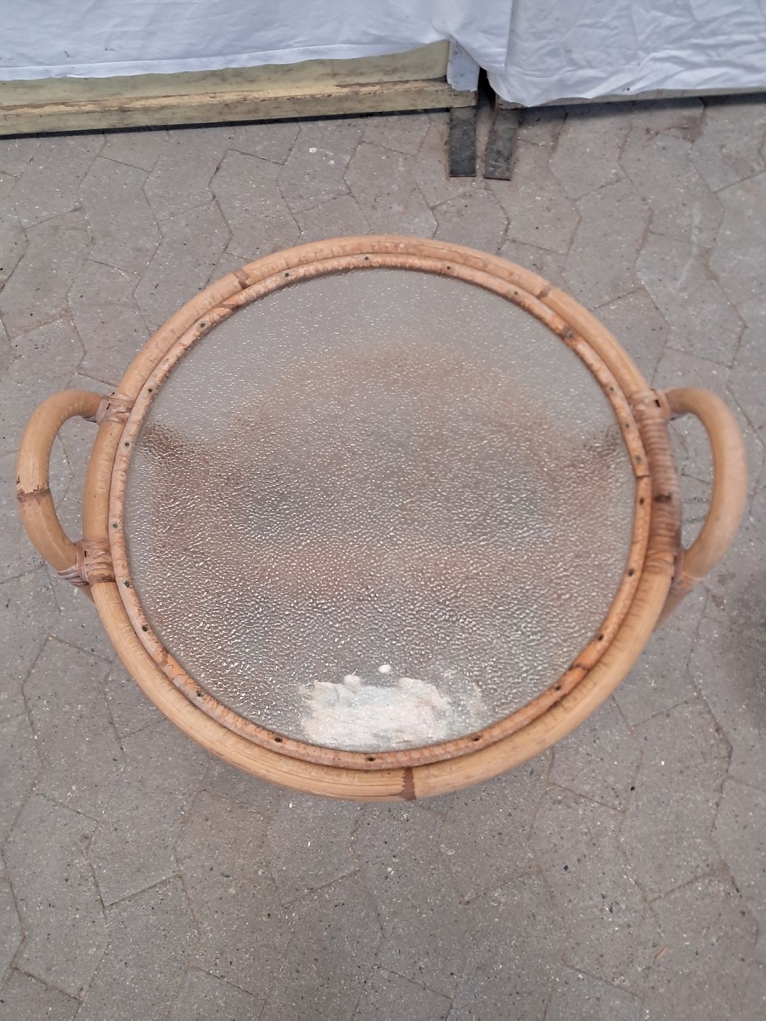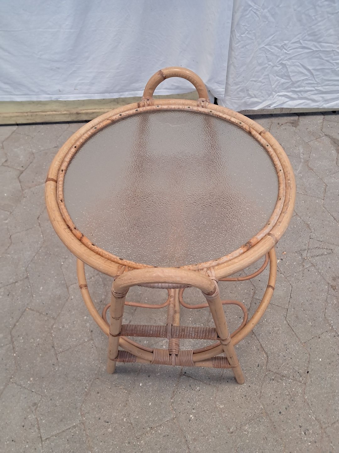 Sidebord i bambus frosted glasplade, fra 1980erne.