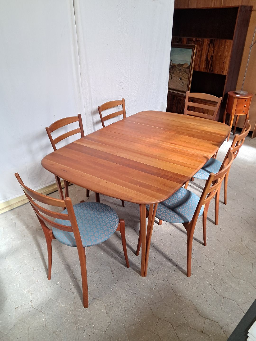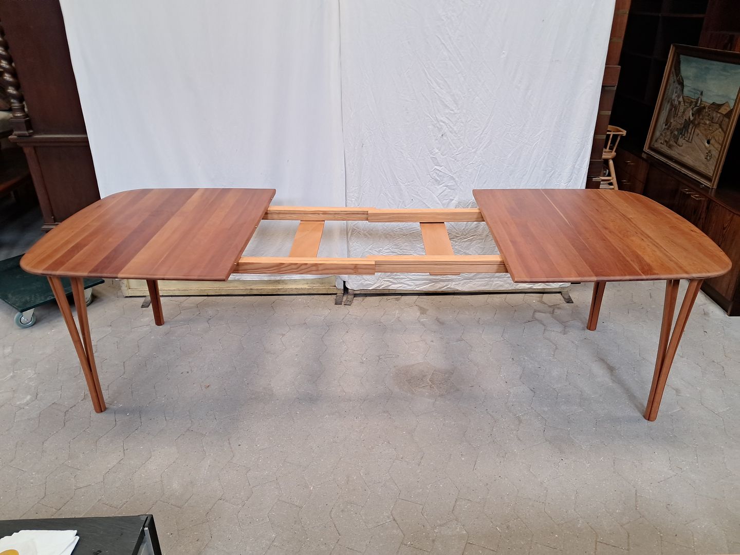 Haslev spisebord i massivt kirsebær med 2 tillægsplader, fra 2000erne.